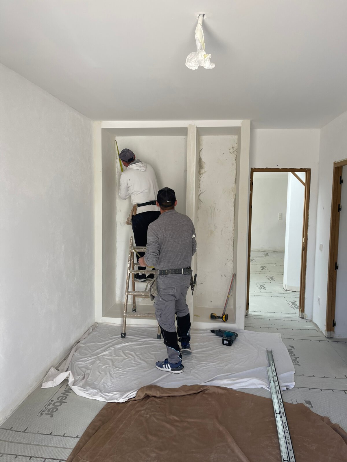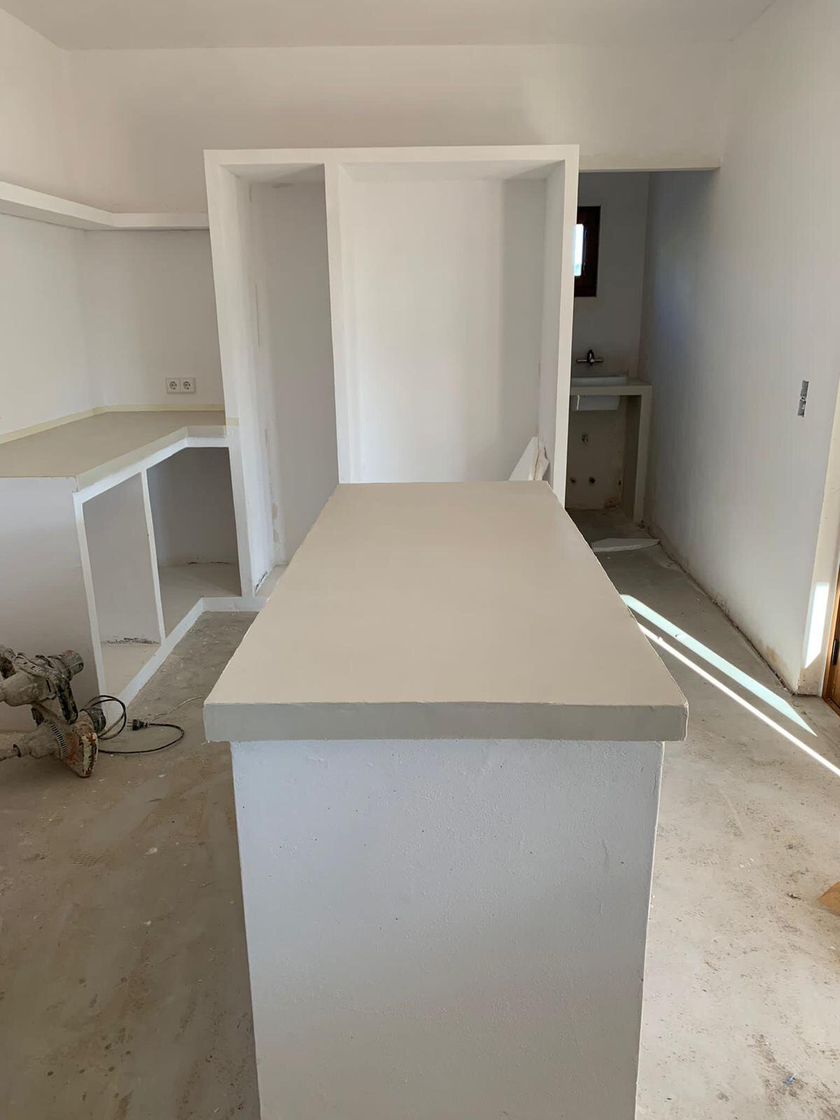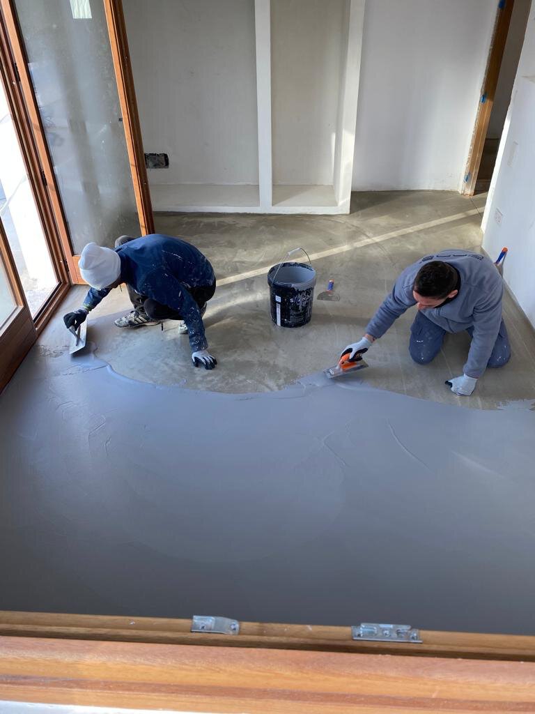 - Herstellung der Deckschichten des Microzement-Bodens im Hauptgebäude