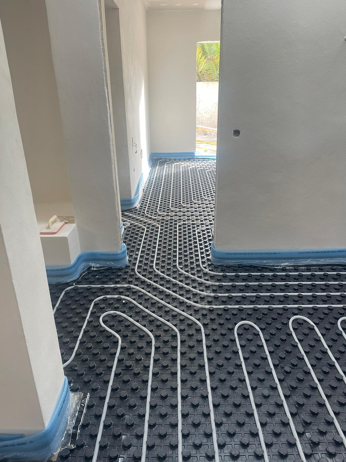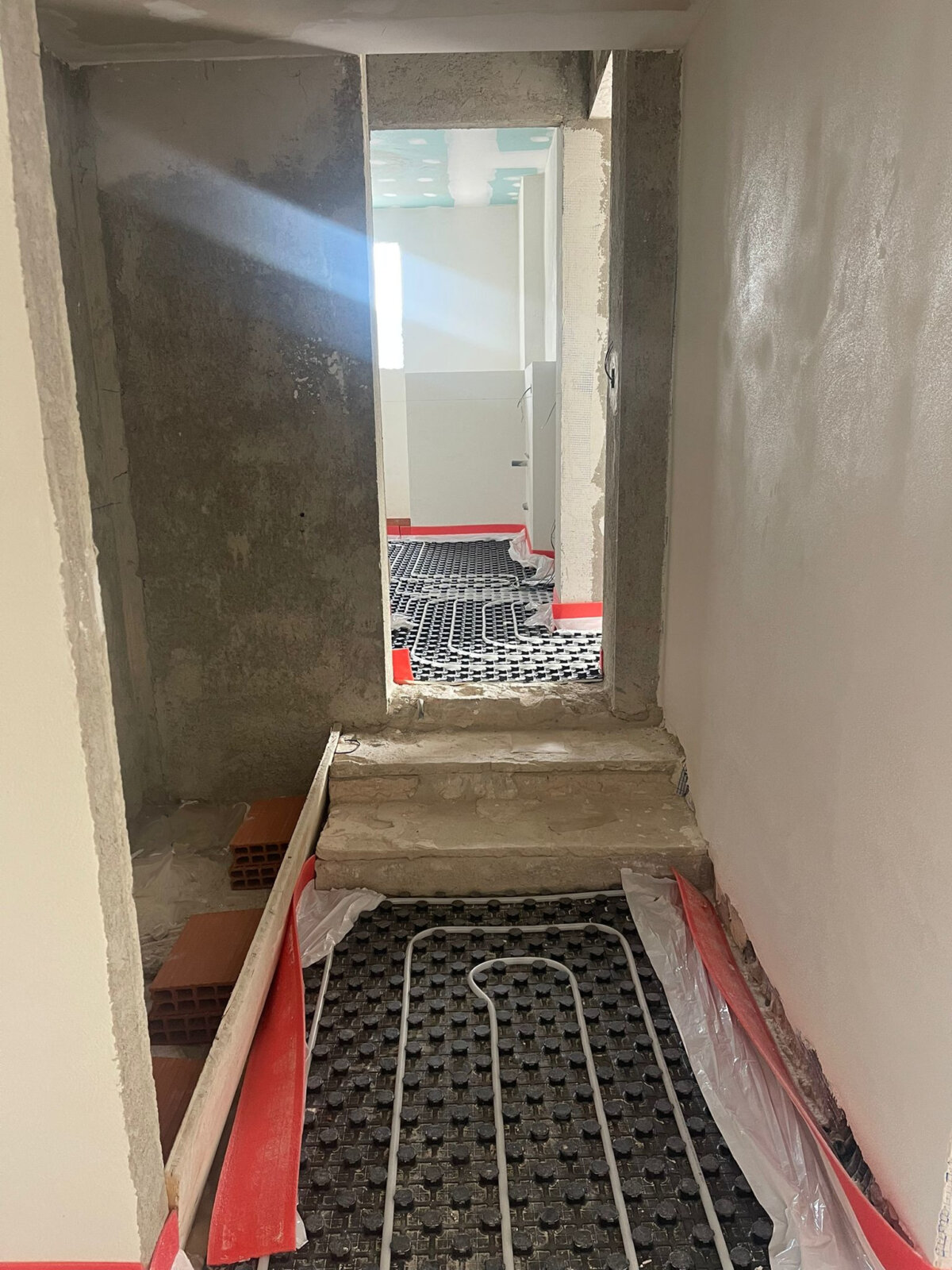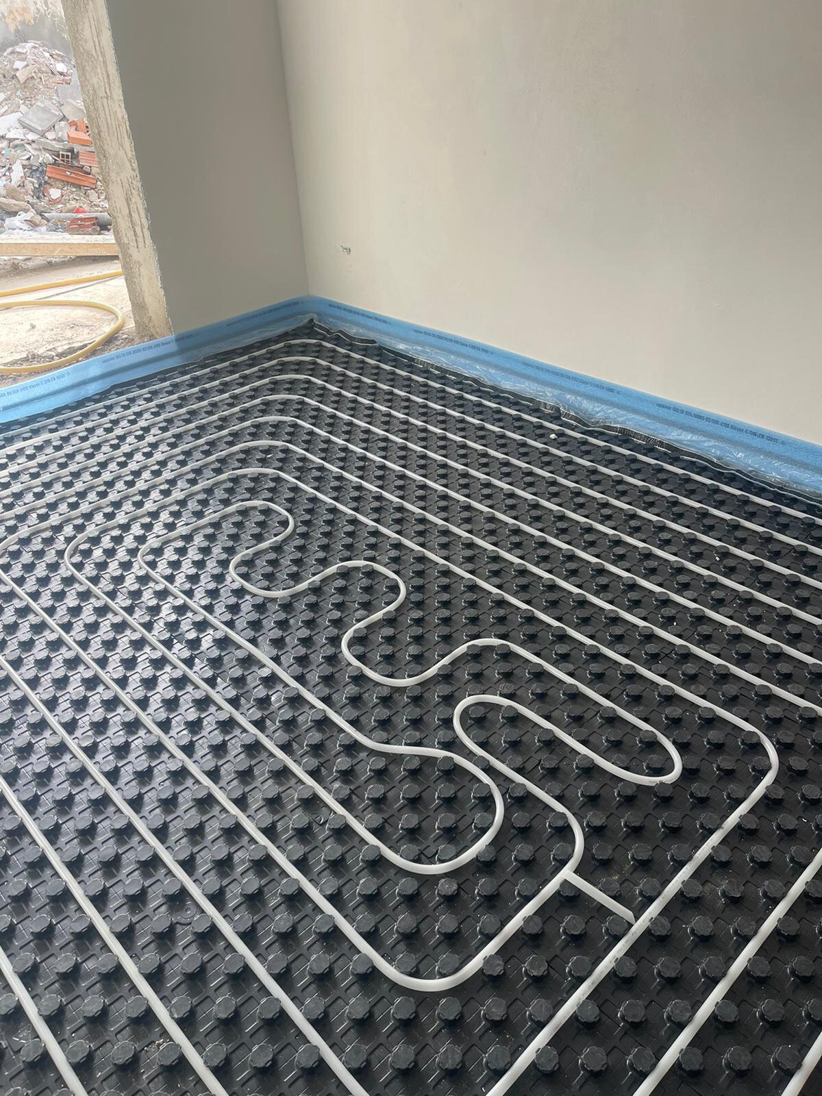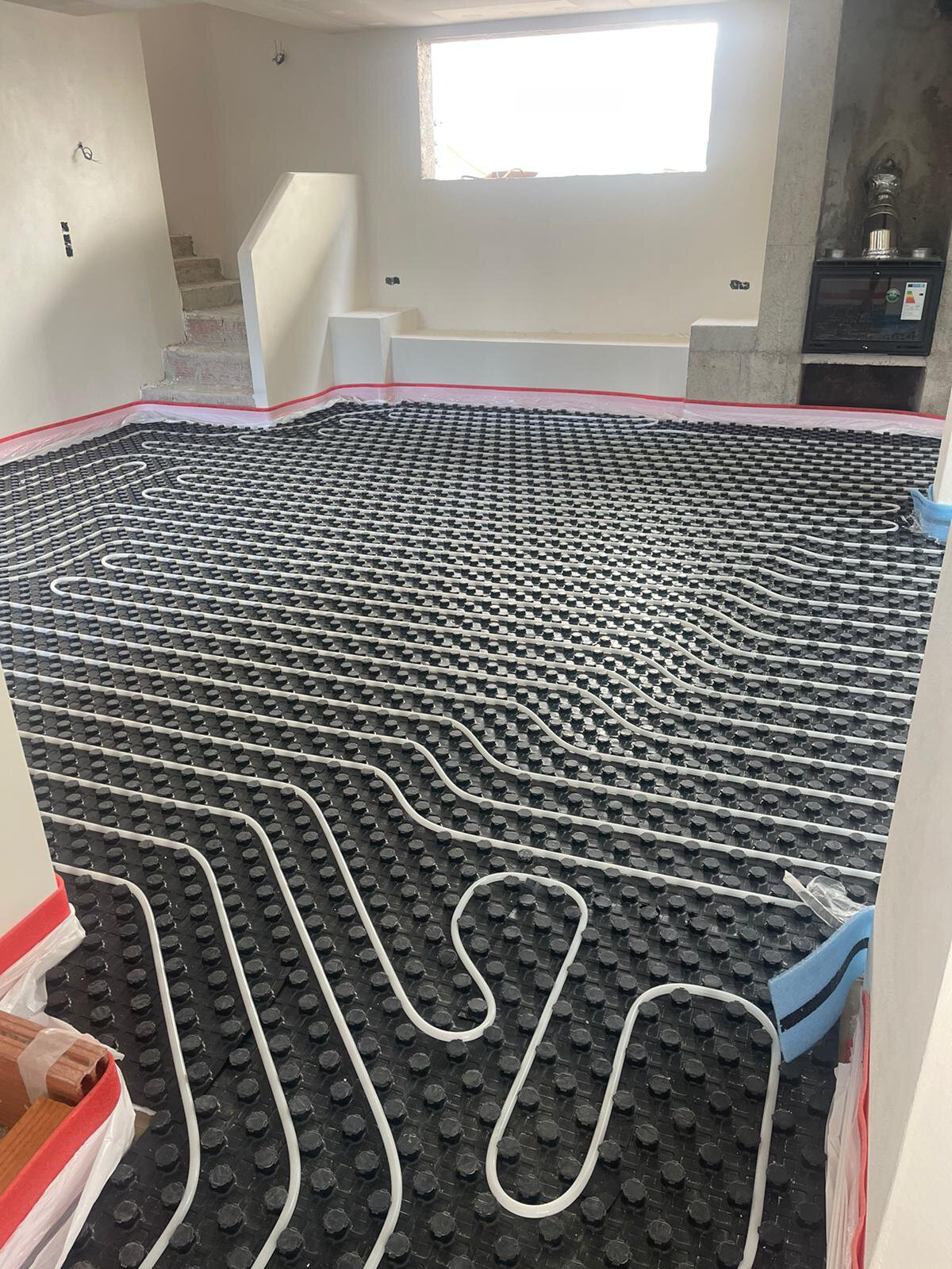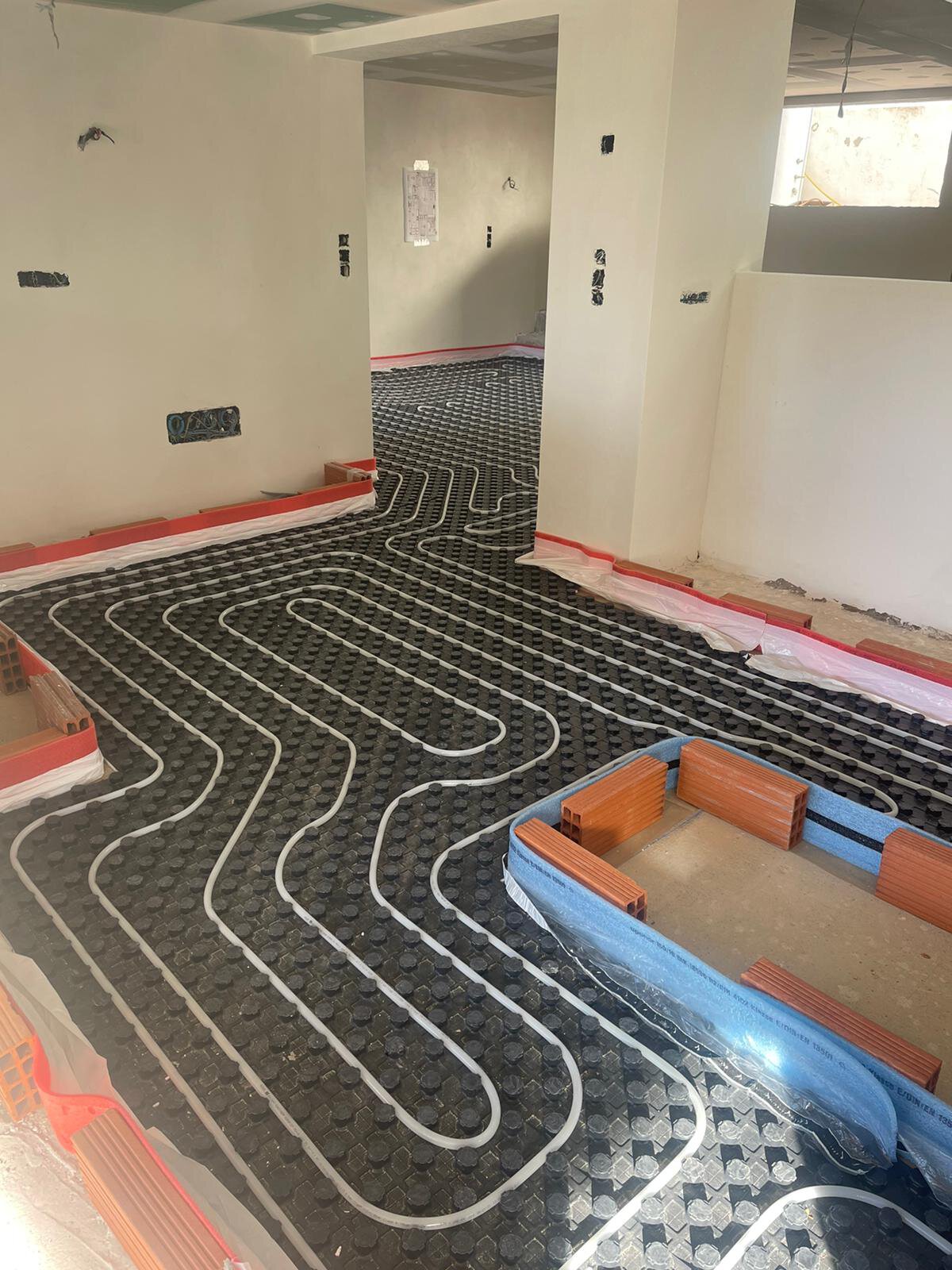 - Aufbau des Estrichs mit Verlegung der Fußbodenheizung in allen Räumen