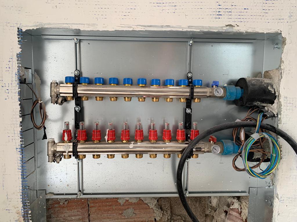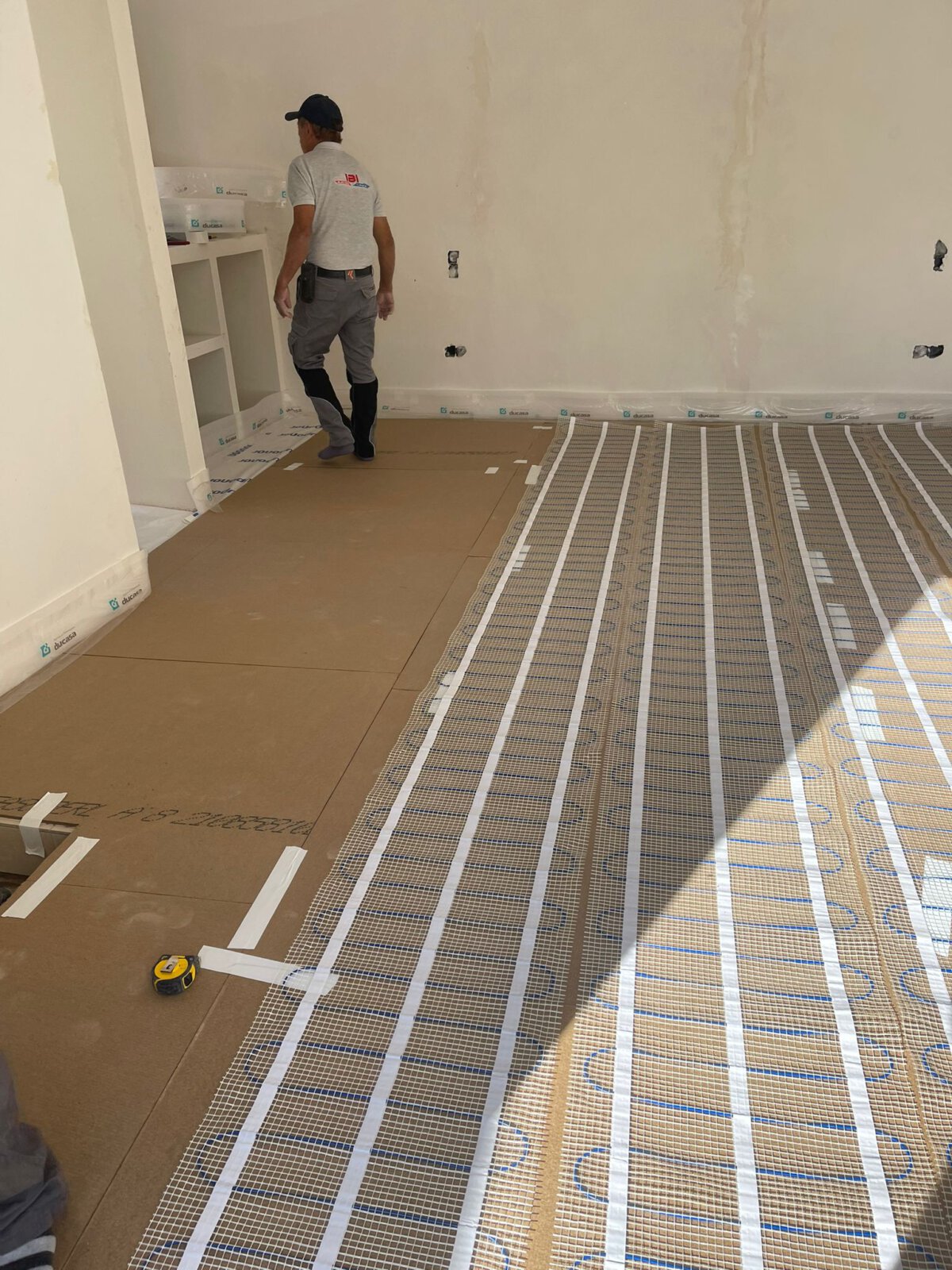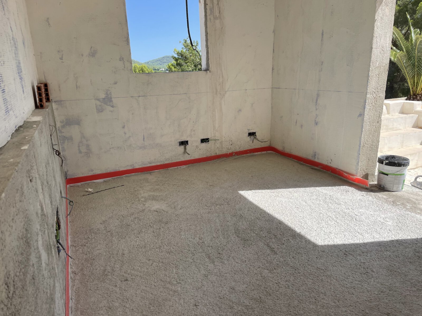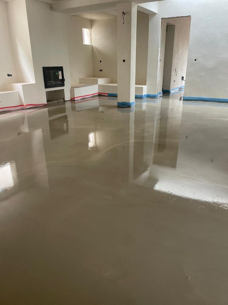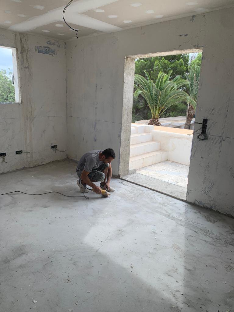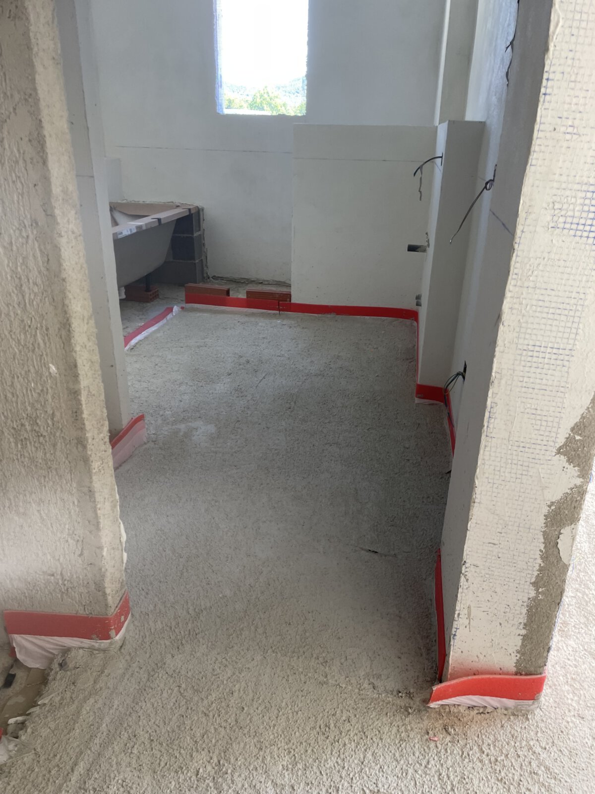 - Aufbau des Estrichs mit Verlegung der Fußbodenheizung in allen Räumen