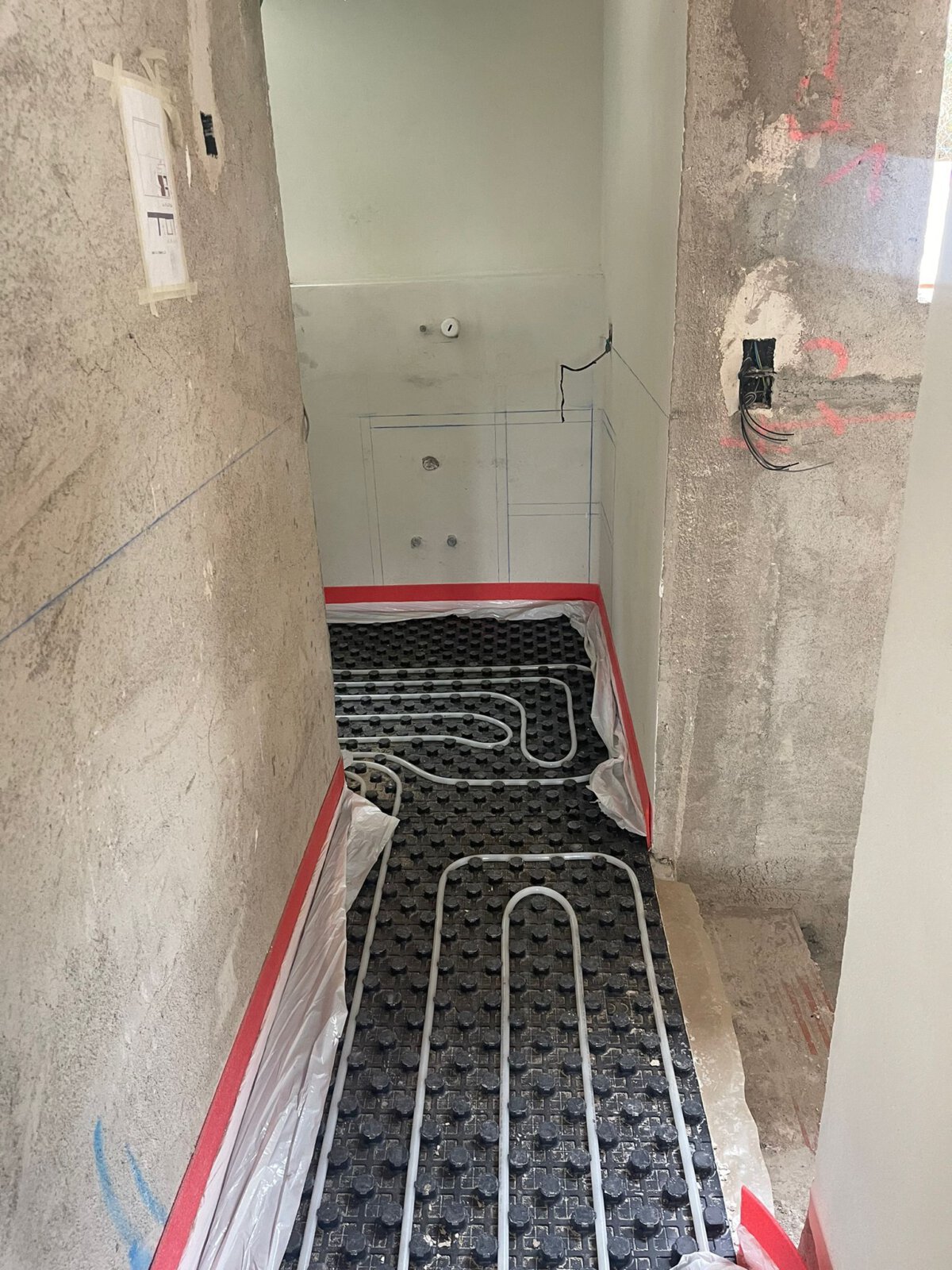 - Beginn der Installation der Sanitärobjekte