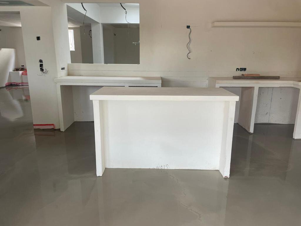 - Anfertigen der verschiedenen Microzement- Muster für den neuen Boden