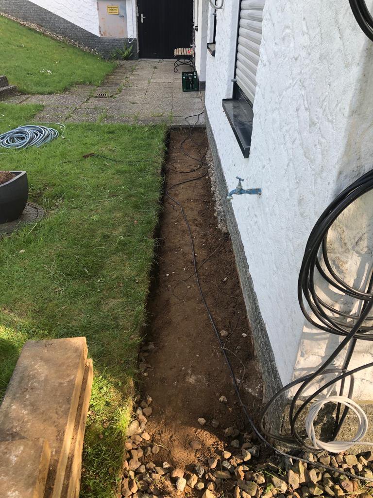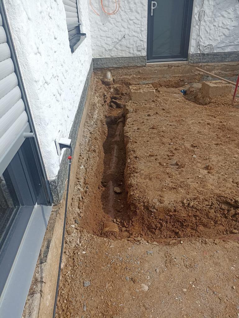 - Versetzen der Bäume, Beginn der Erdarbeiten für das Anlegen der unterschiedlichen Höhenniveaus im Außenbereich