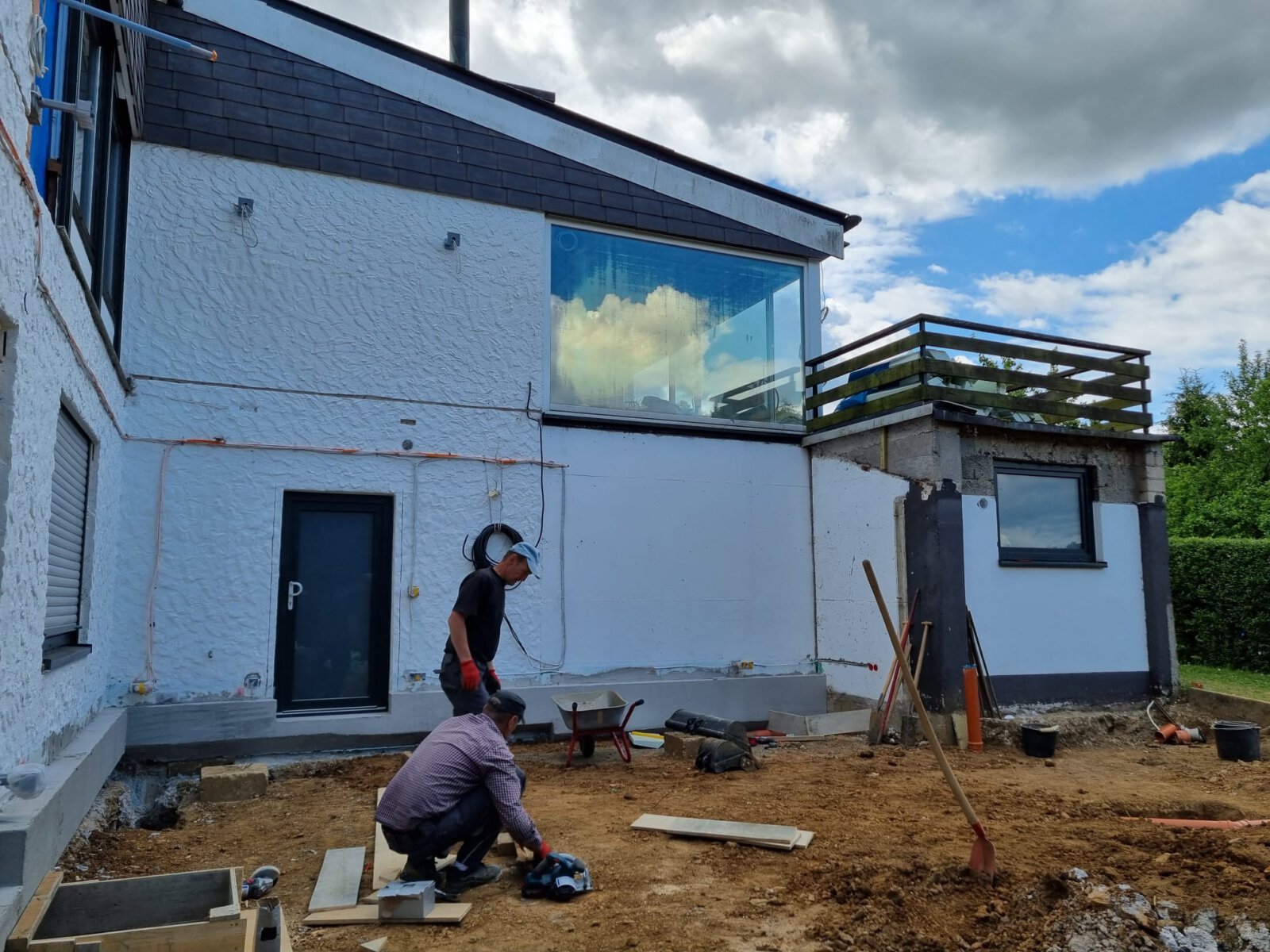 - – Vorbereitung der Fußbodenfräsung für die Installation der Fußbodenheizung