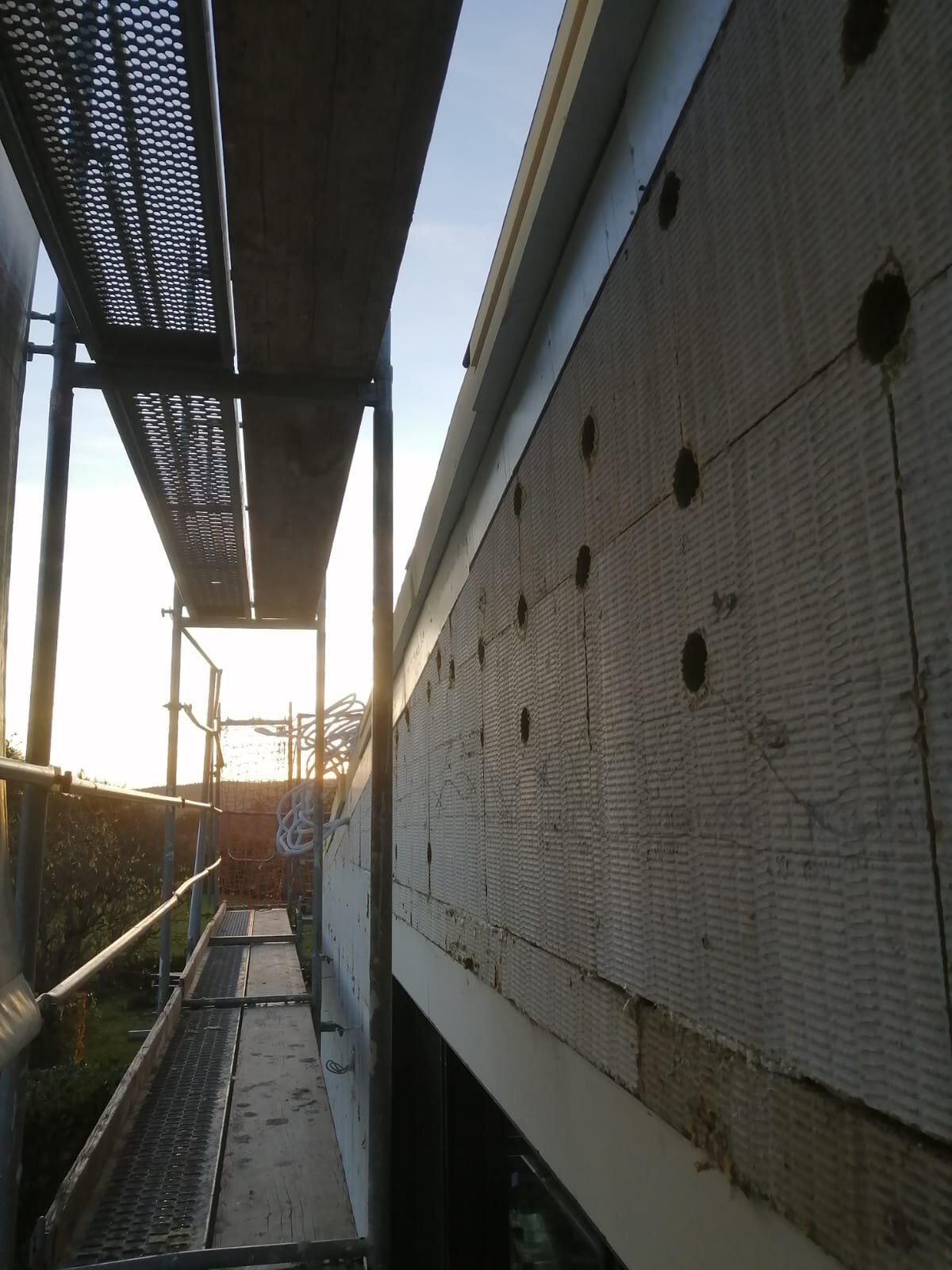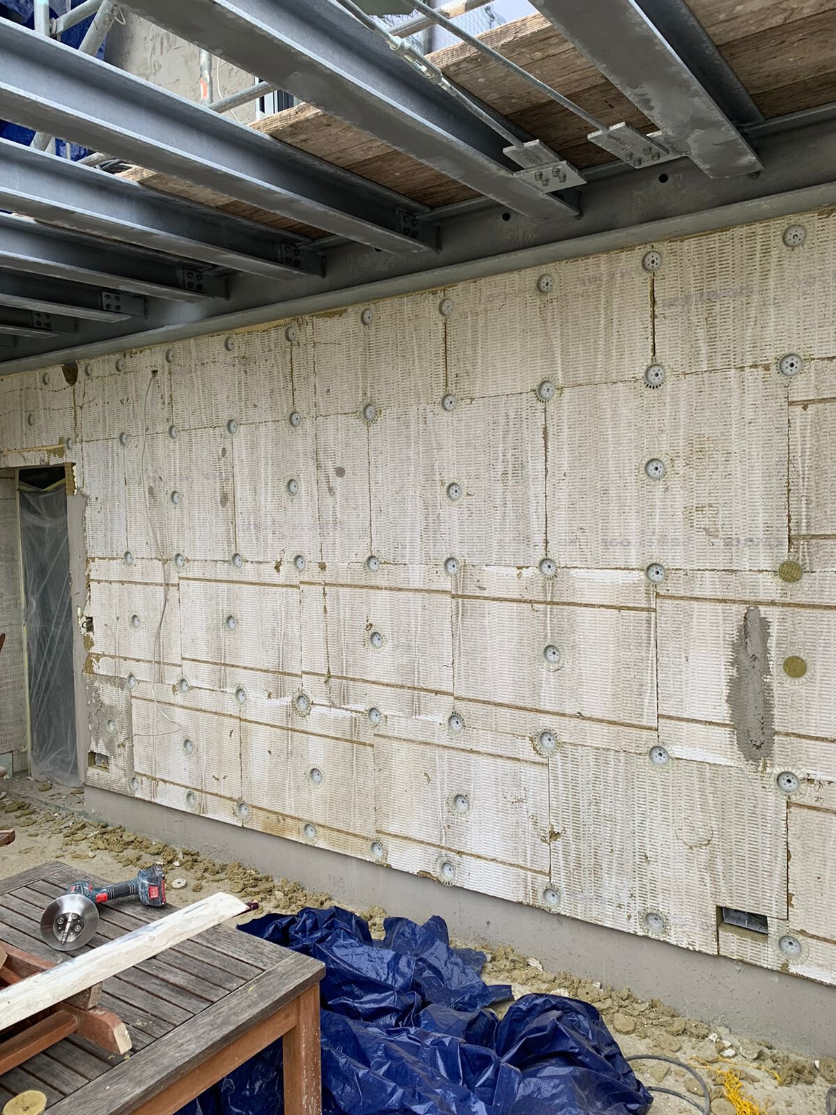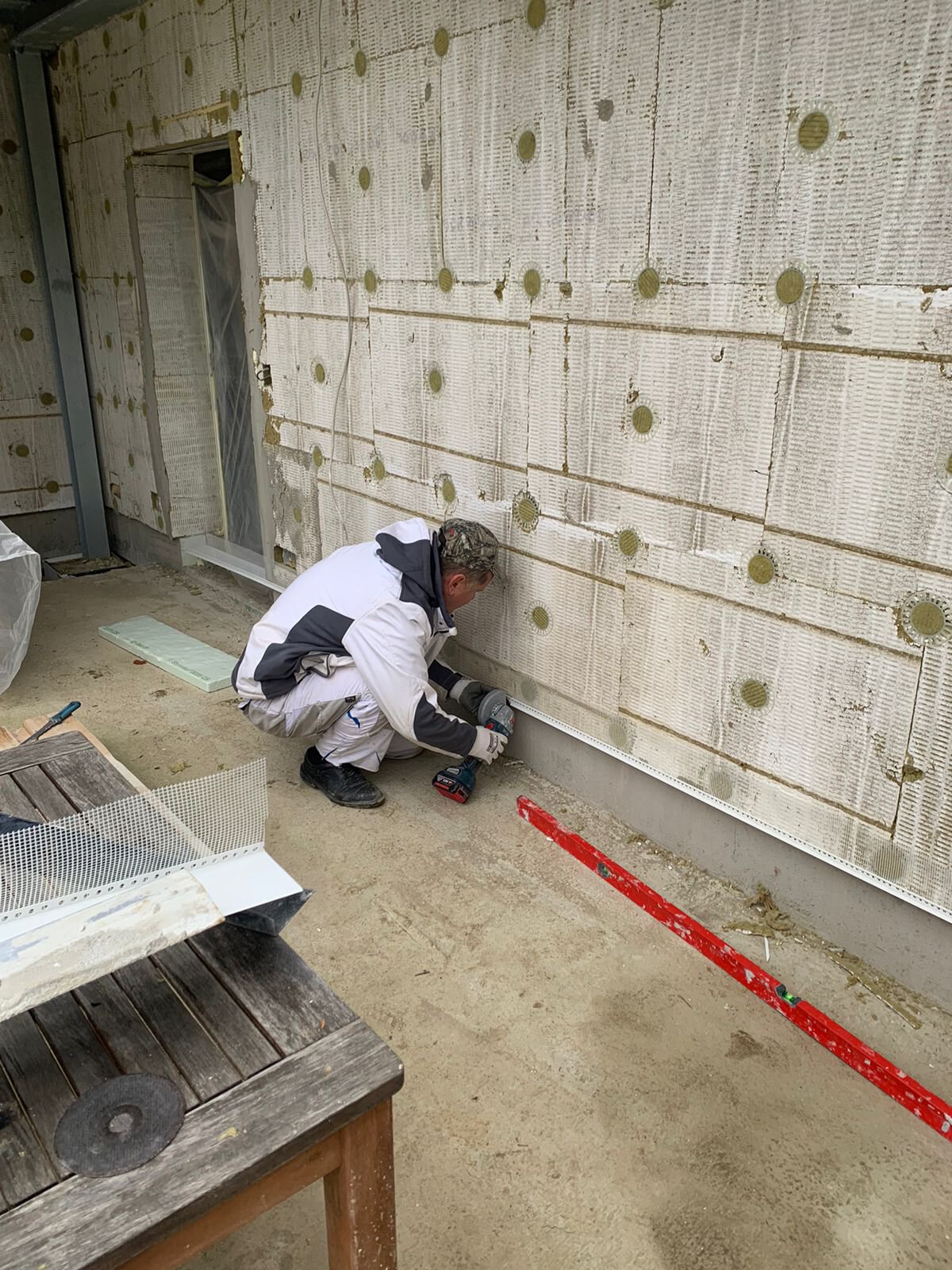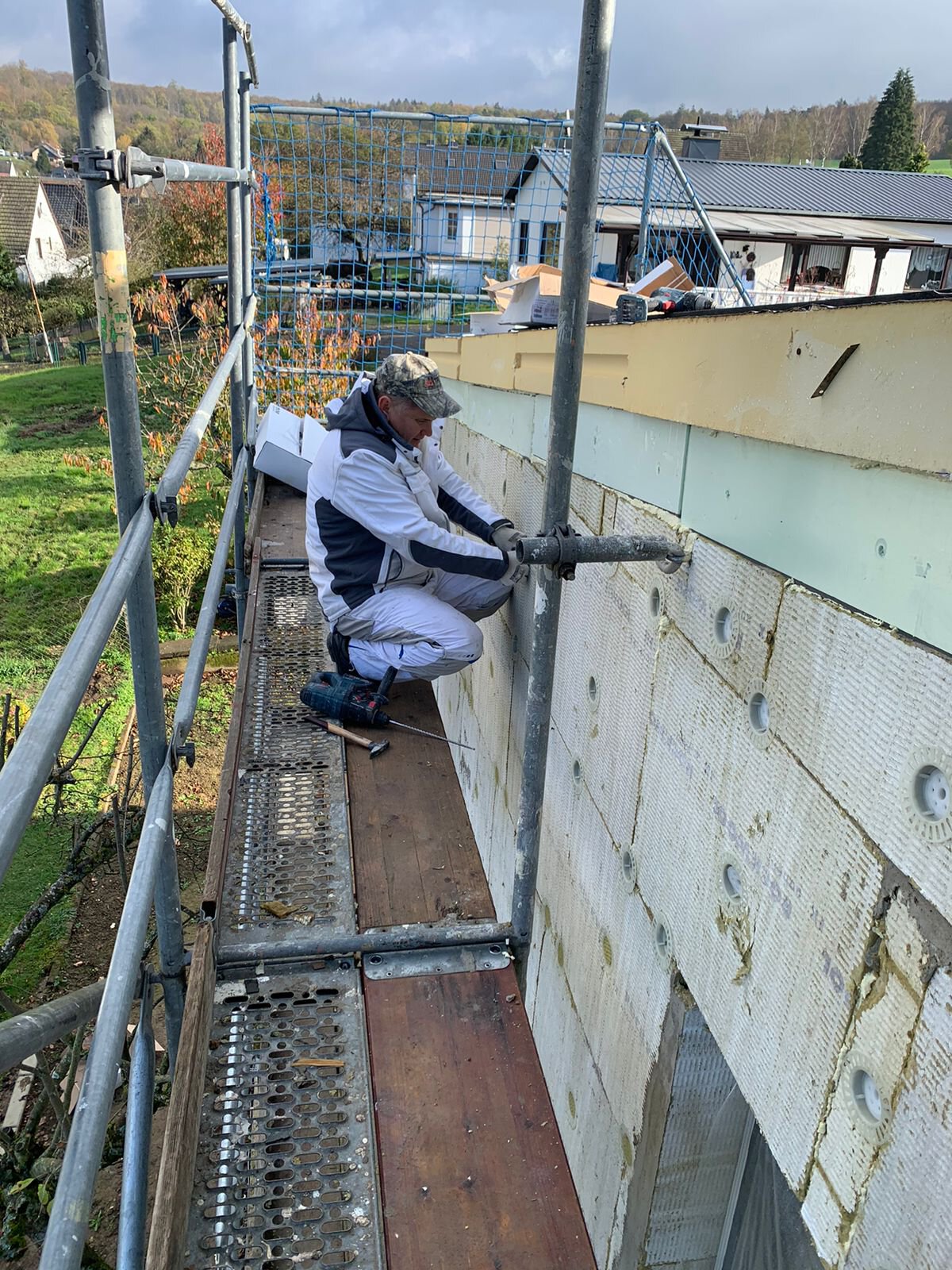 - Anbringen der Dämmstoffplatten aus Mineralwolle für das Wärmedämm-Verbundsystem