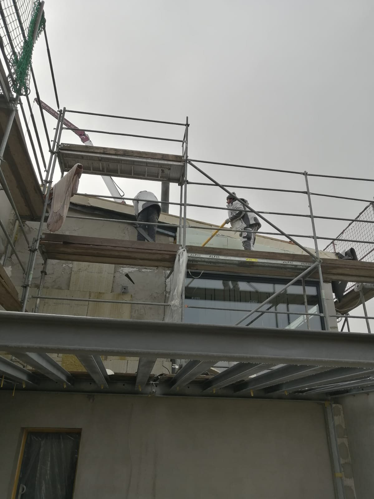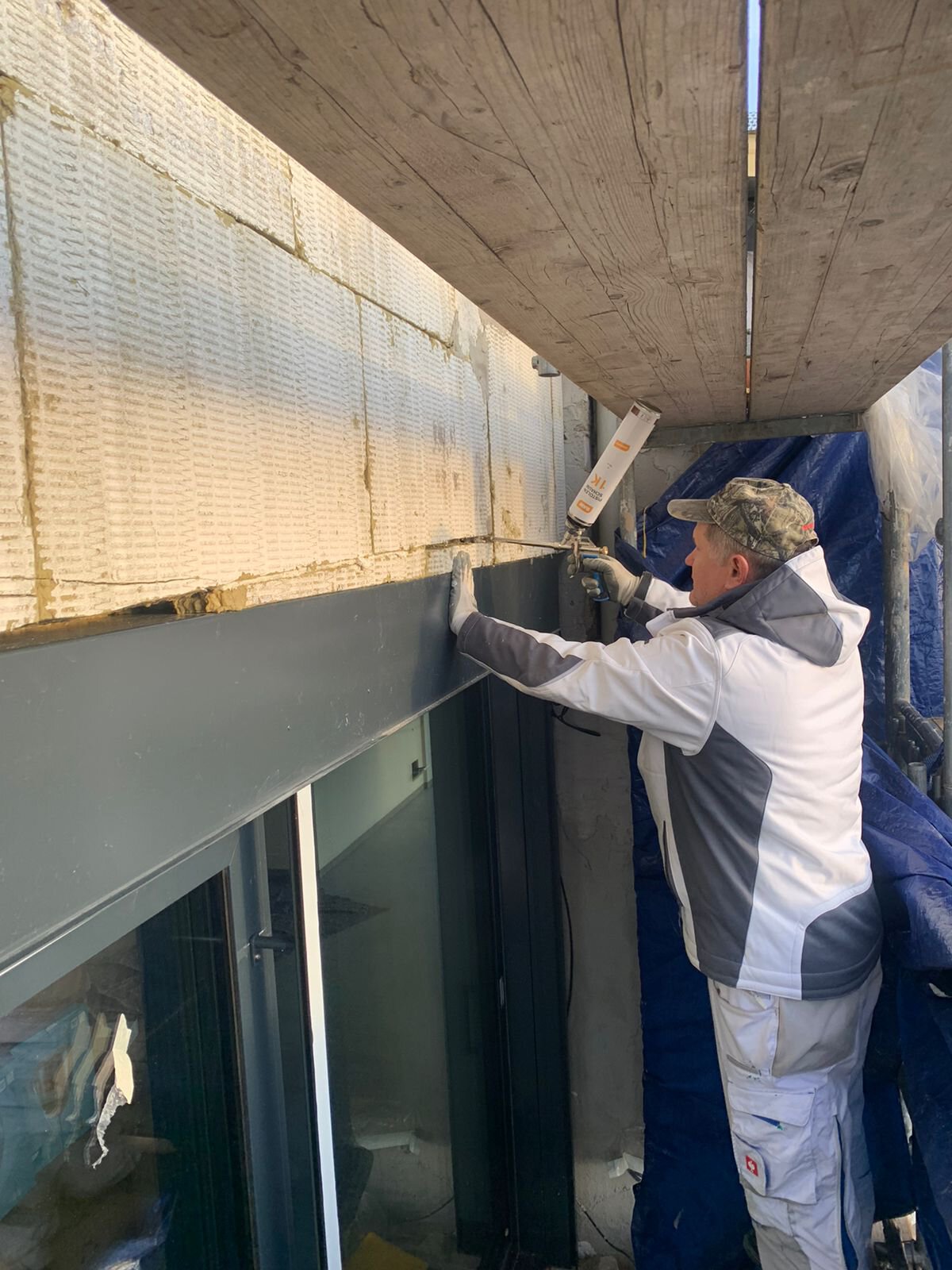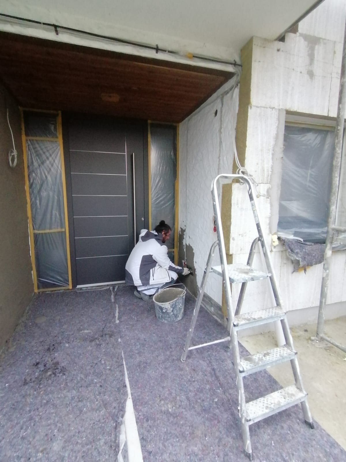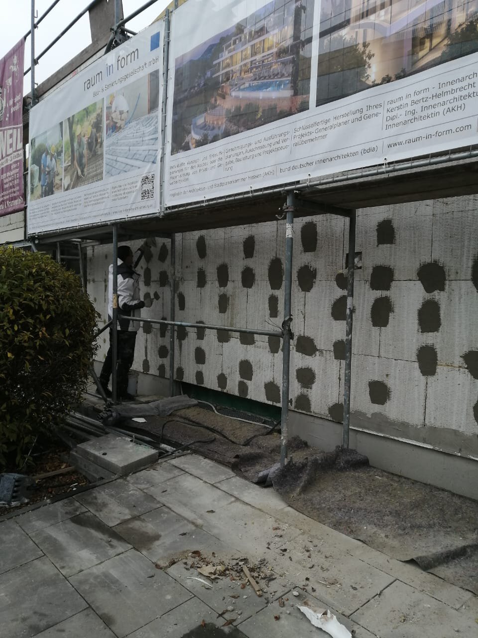- Anbringen der Dämmstoffplatten aus Mineralwolle für das Wärmedämm-Verbundsystem