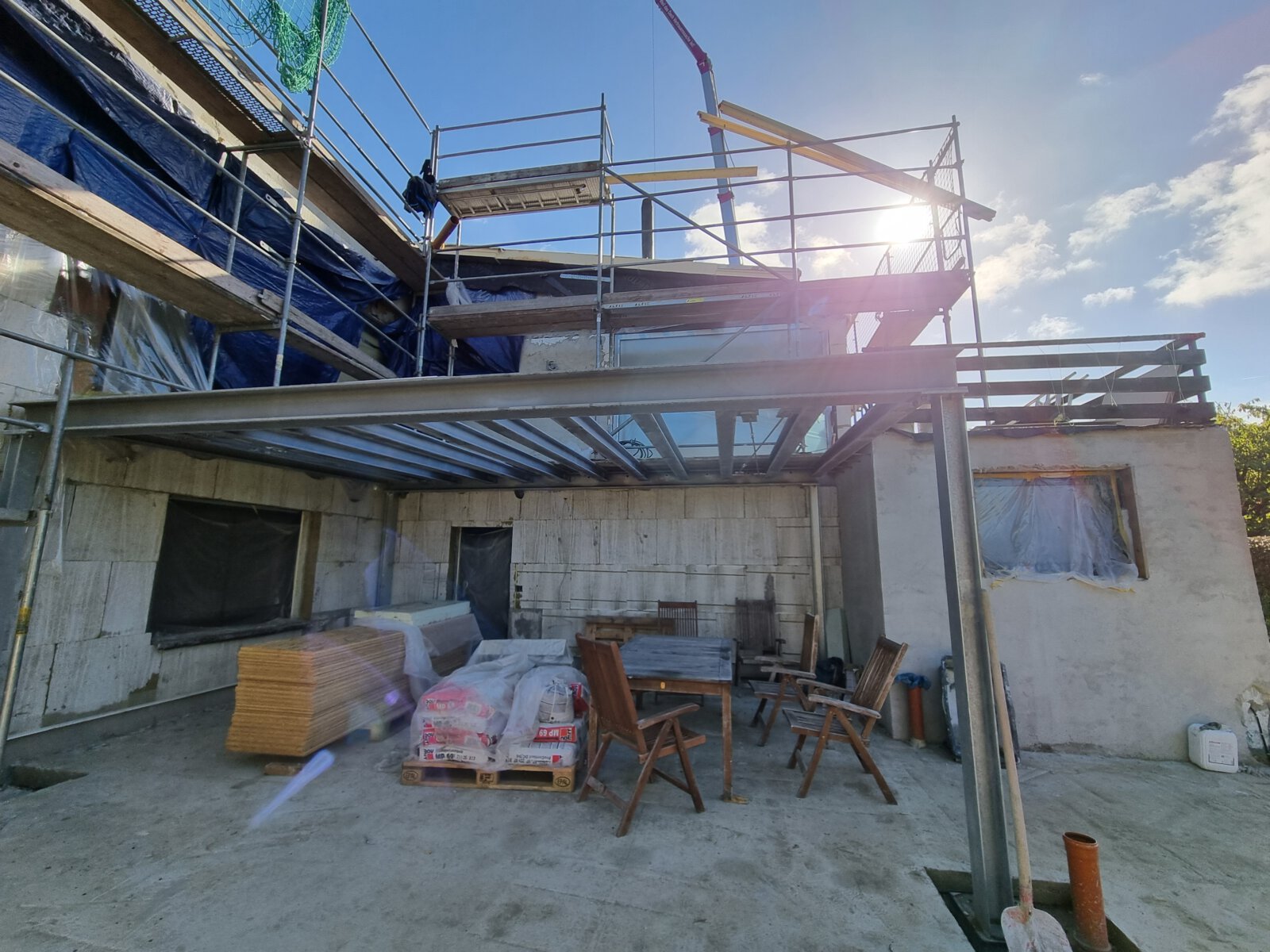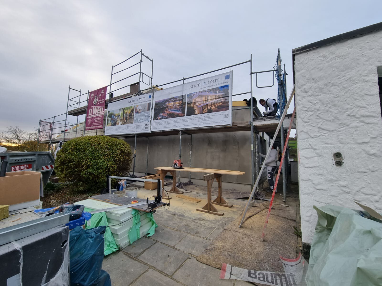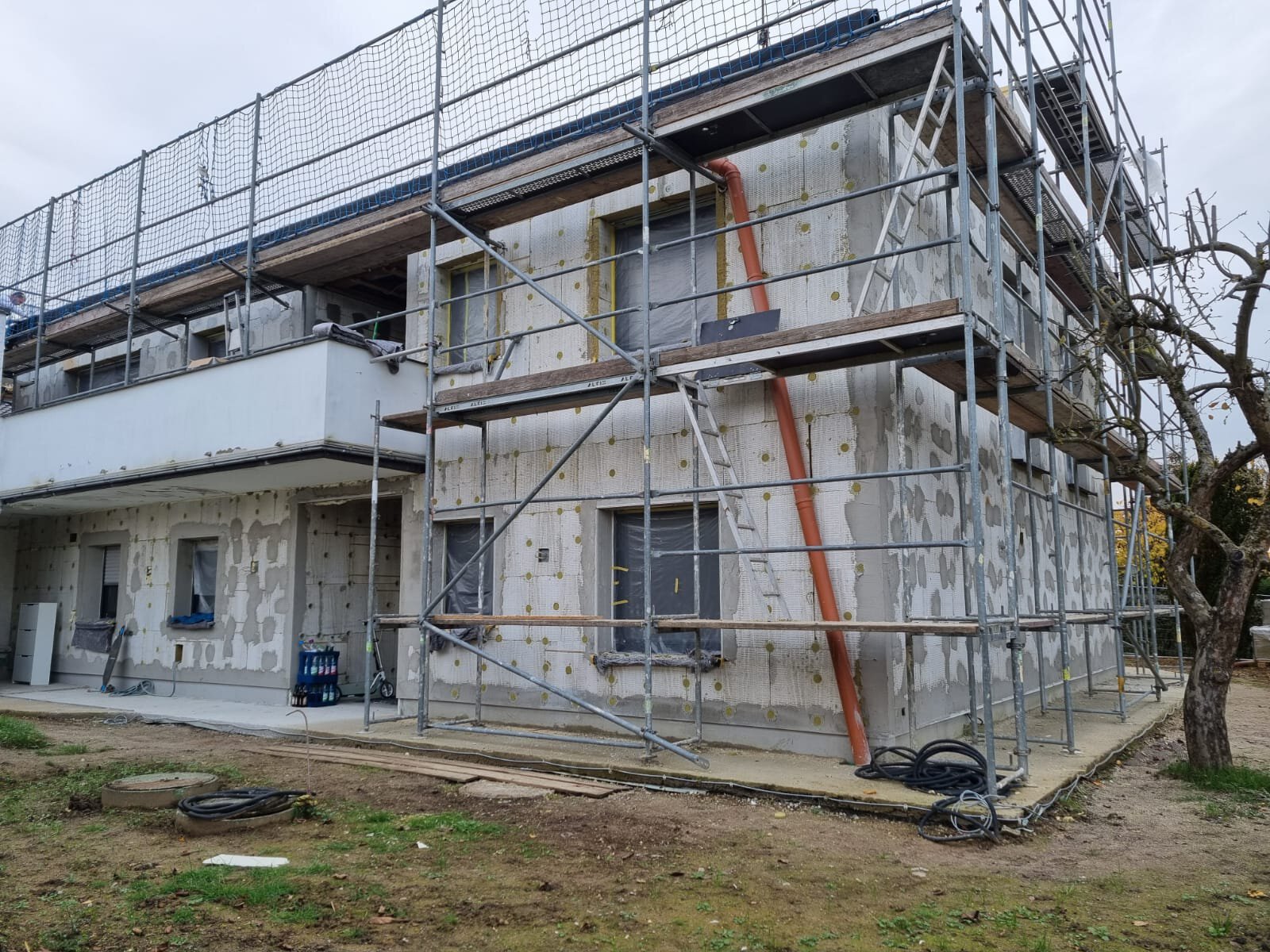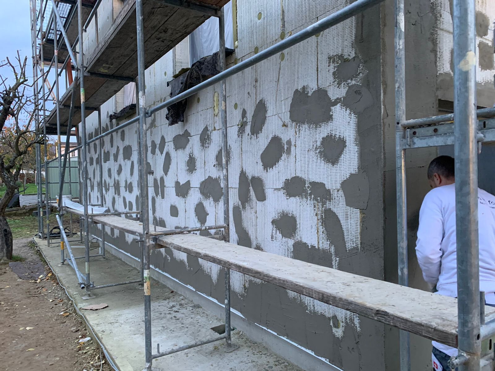 - Anbringen der Dämmstoffplatten aus Mineralwolle für das Wärmedämm-Verbundsystem