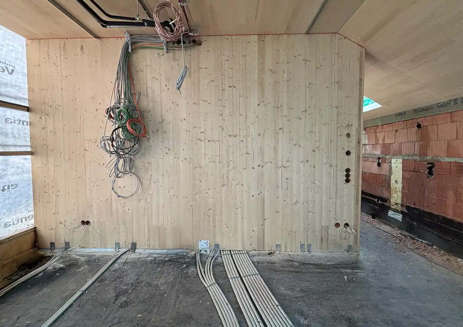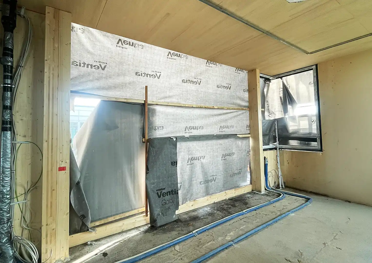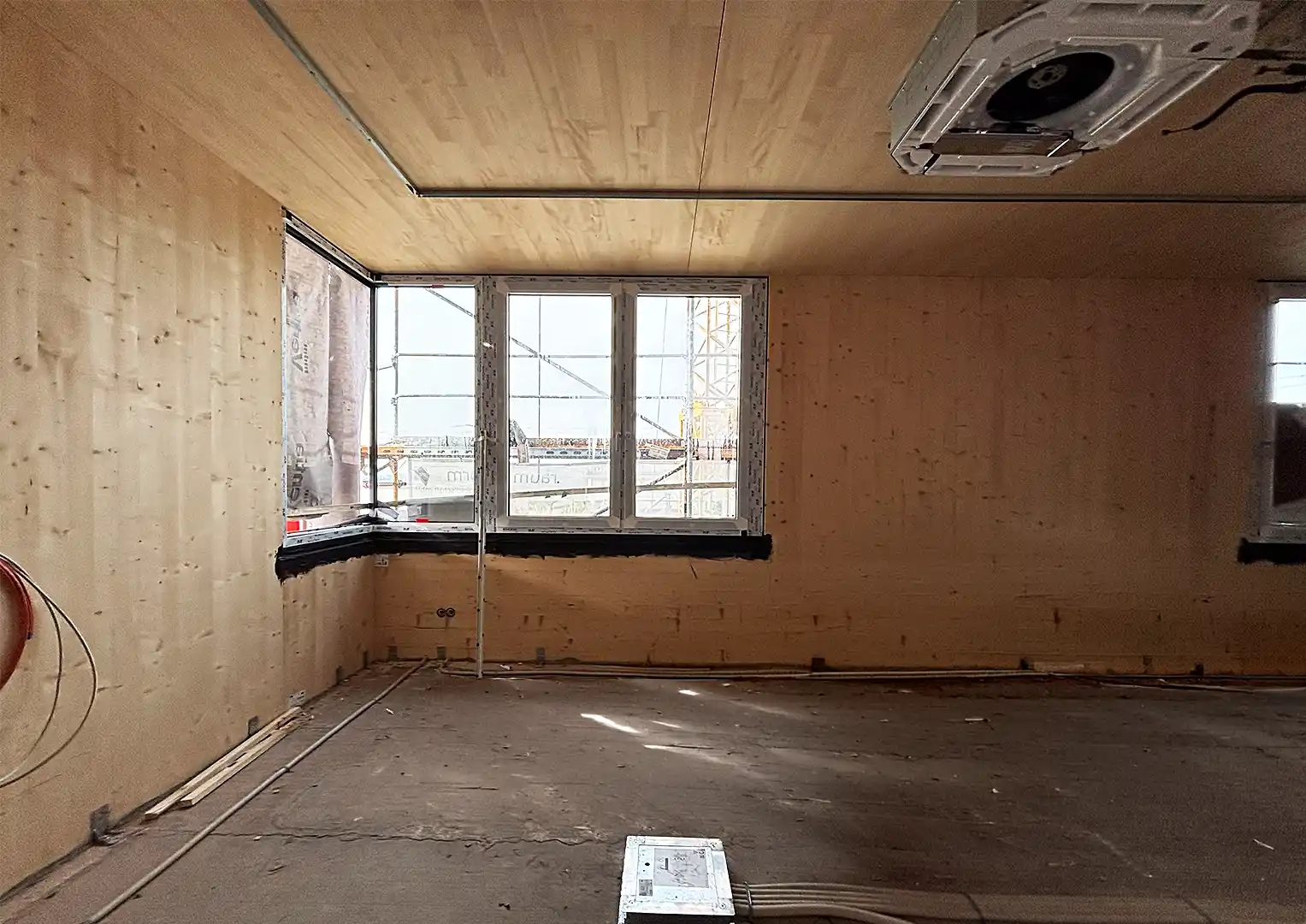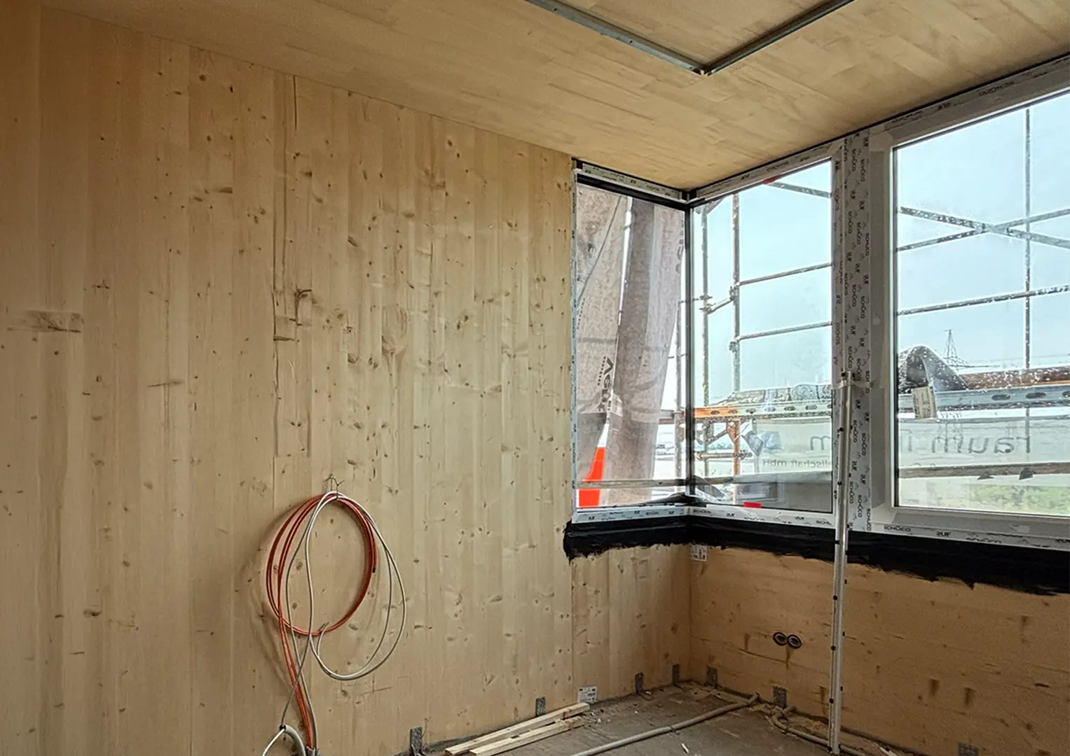 • Entfernung der Schutzplane des Holzbaus (witterungsbedingter Bautenschutz)