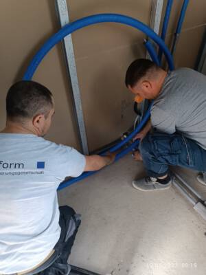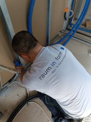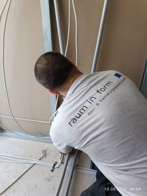 • Verlegung der Leitungen für die Handtuchheizkörper