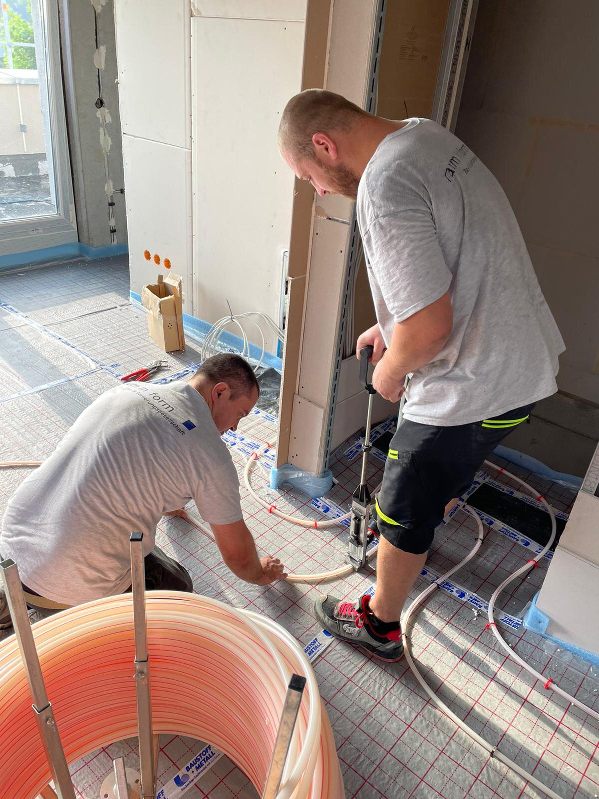 Aktueller Bautenstand der Heizungs- und Sanitärinstallationen für den Neubau von 8 Reihenhäusern und 4 Doppelhaushälften in Endingen am Kaiserstuhl…