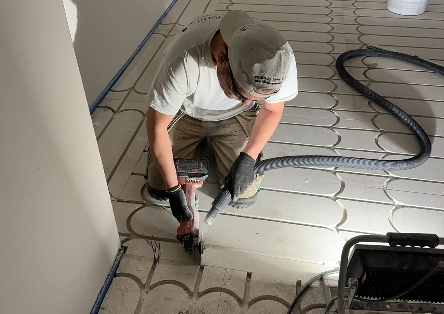 - Rohrführungen für die Fußbodenheizung eingefräst