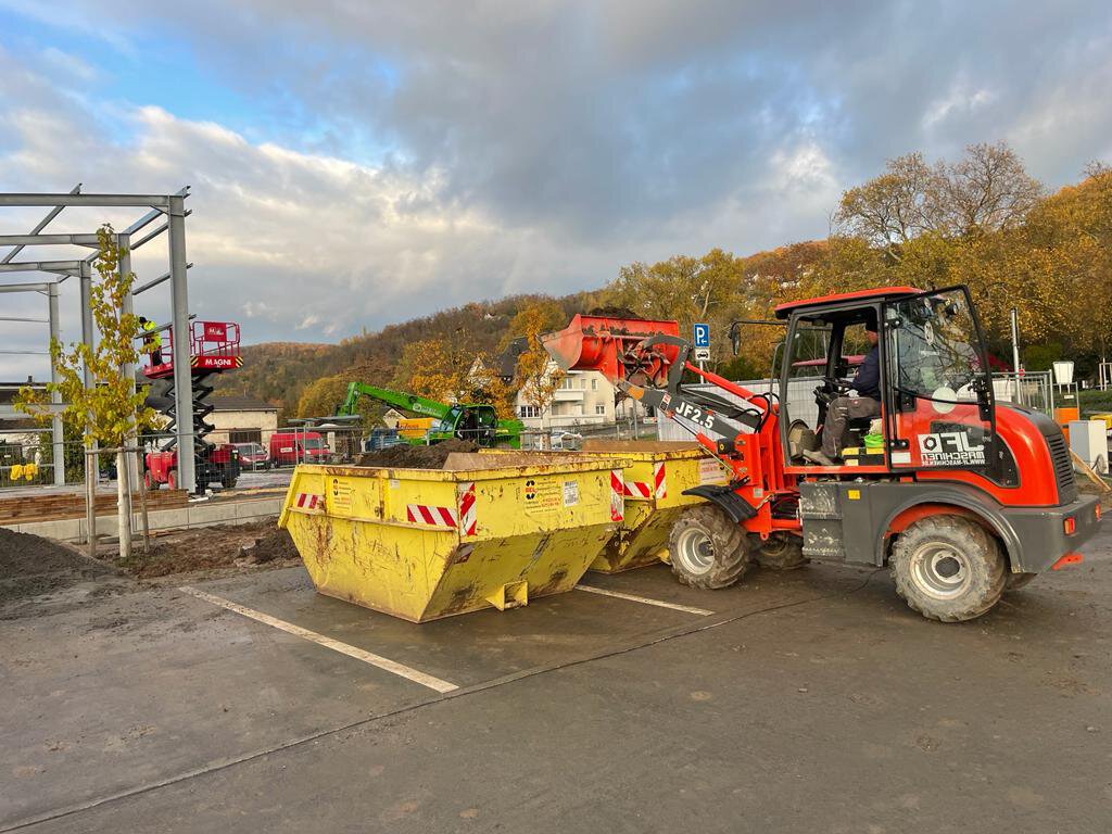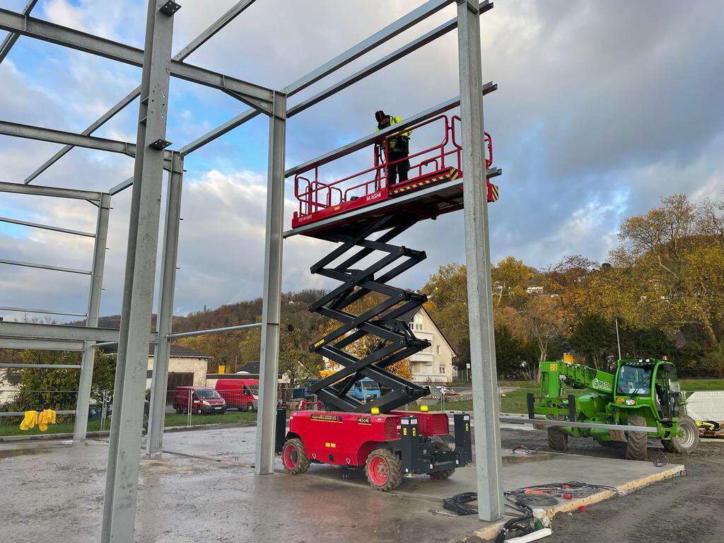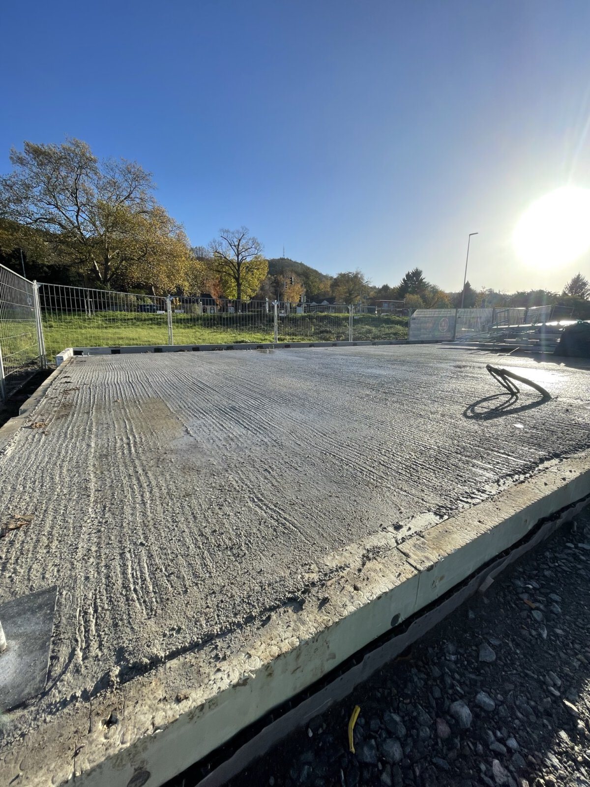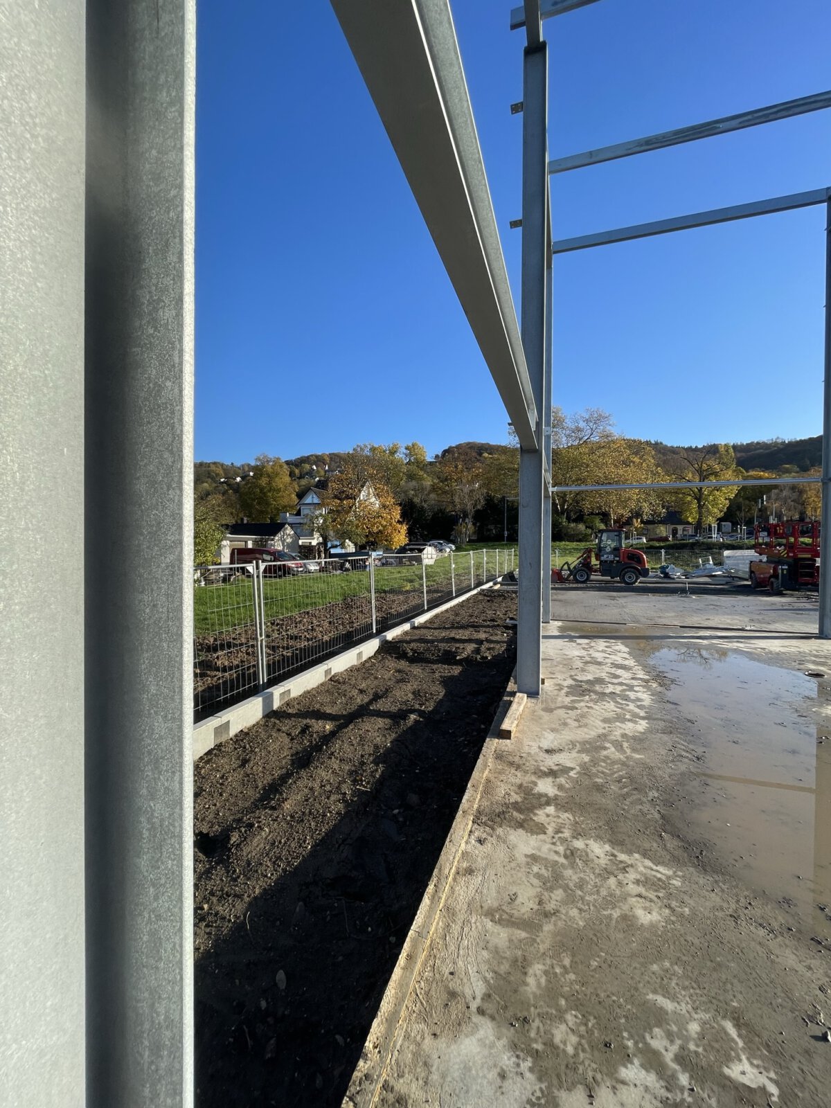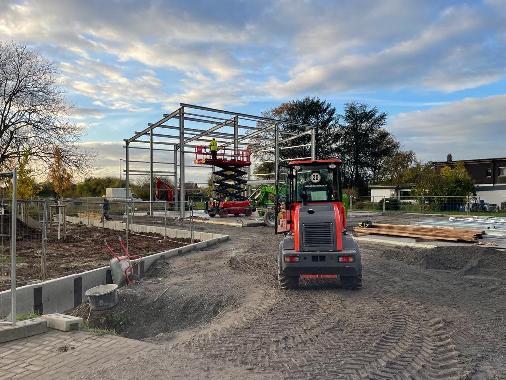 Aktueller Bautenstand des Neubaus einer Fahrzeug- Halle mit Garagen und einer Waschstation in Weinheim…