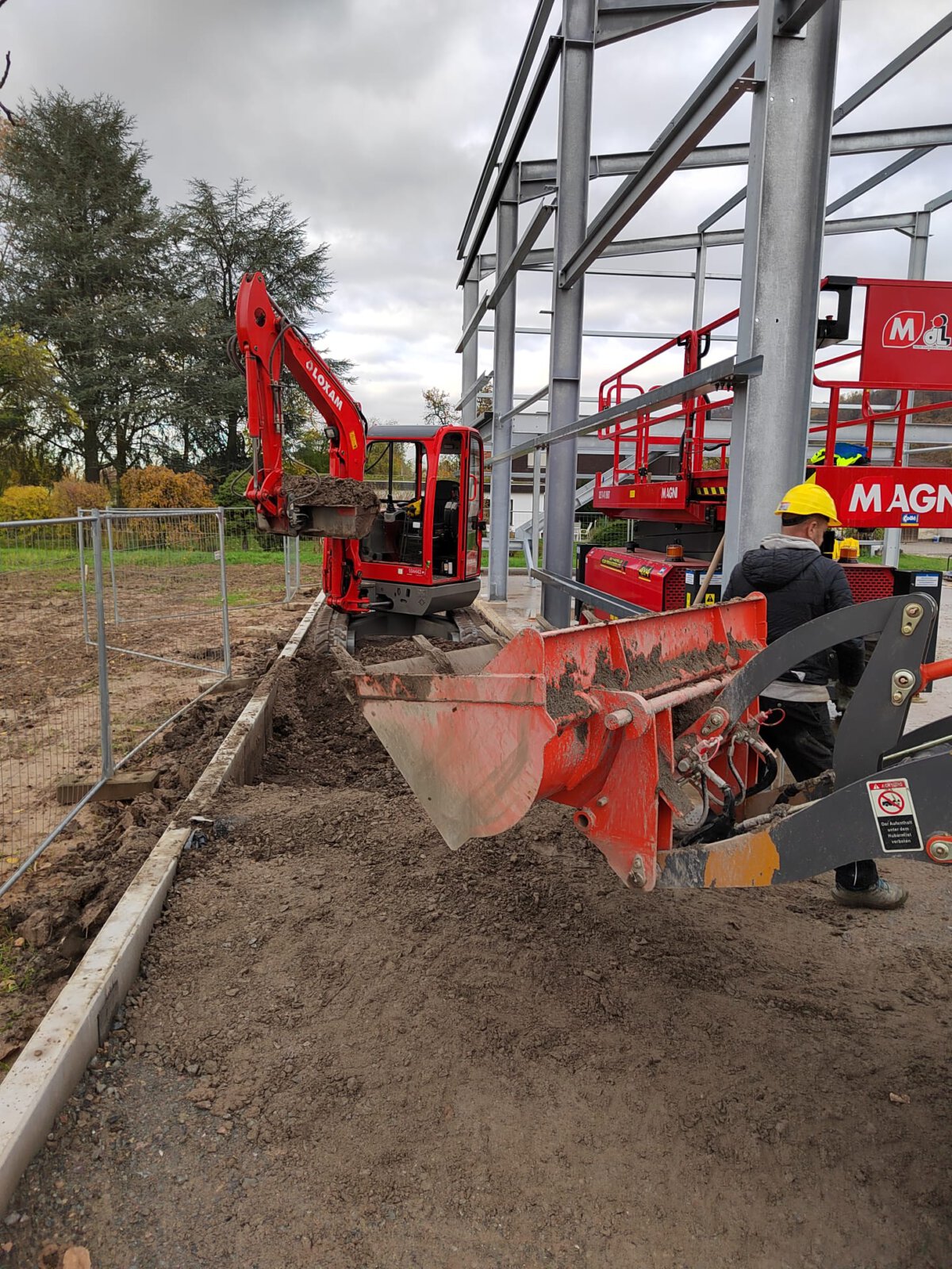 • Auffüllen des Geländes für einen ebenen Zugang in die Garagen und die Halle