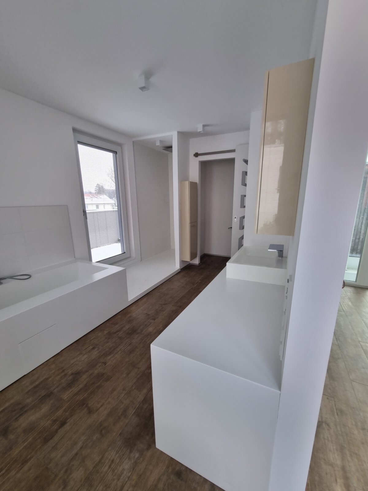 Mit der Aufstockung des 2. Obergeschosses wird in den wettergünstigen nächsten Monaten begonnen. Dort soll ein weiterer großzügiger, lichtdurchfluteter Lebensraum geschaffen werden, angrenzend an eine Dachterrasse mit tollem Ausblick, in die ein Oberlicht integriert wird, um den darunter liegenden Raum zusätzlich zu belichten.