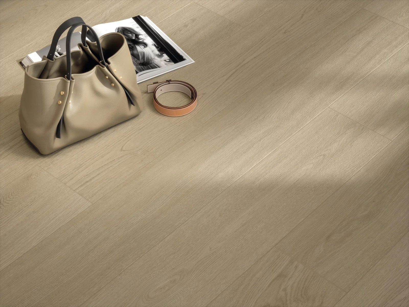Jeder dieser Stile ist von den natürlichen Nuancen des Eichenholzes inspiriert. Die natürliche Wirkung des Holzes wird dank der Vielfalt an realistischen Details sowie Spuren der traditionellen Hobelbearbeitung der Oberfläche noch verstärkt.