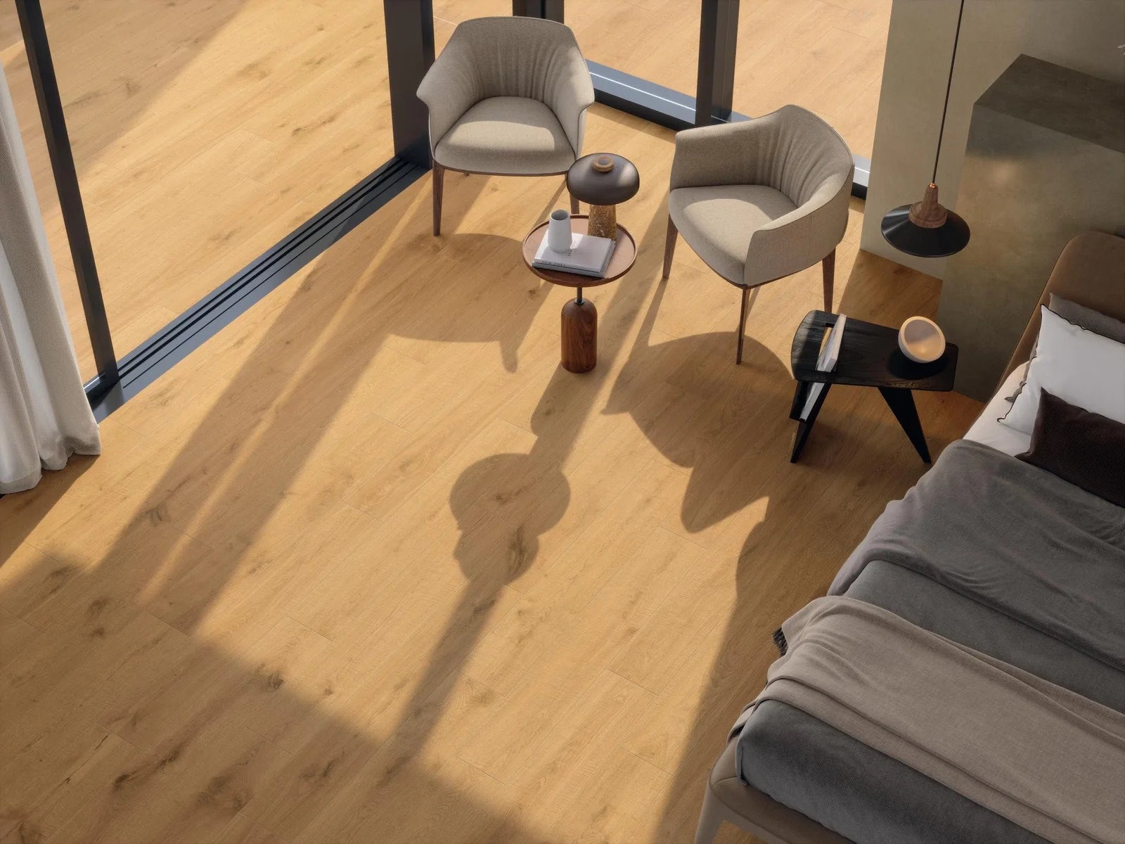 Mit der neuen Kollektion Entice vereint Atlas Concorde die Wärme und Eleganz des Eichenholzes mit der Funktionalität von Feinsteinzeug.