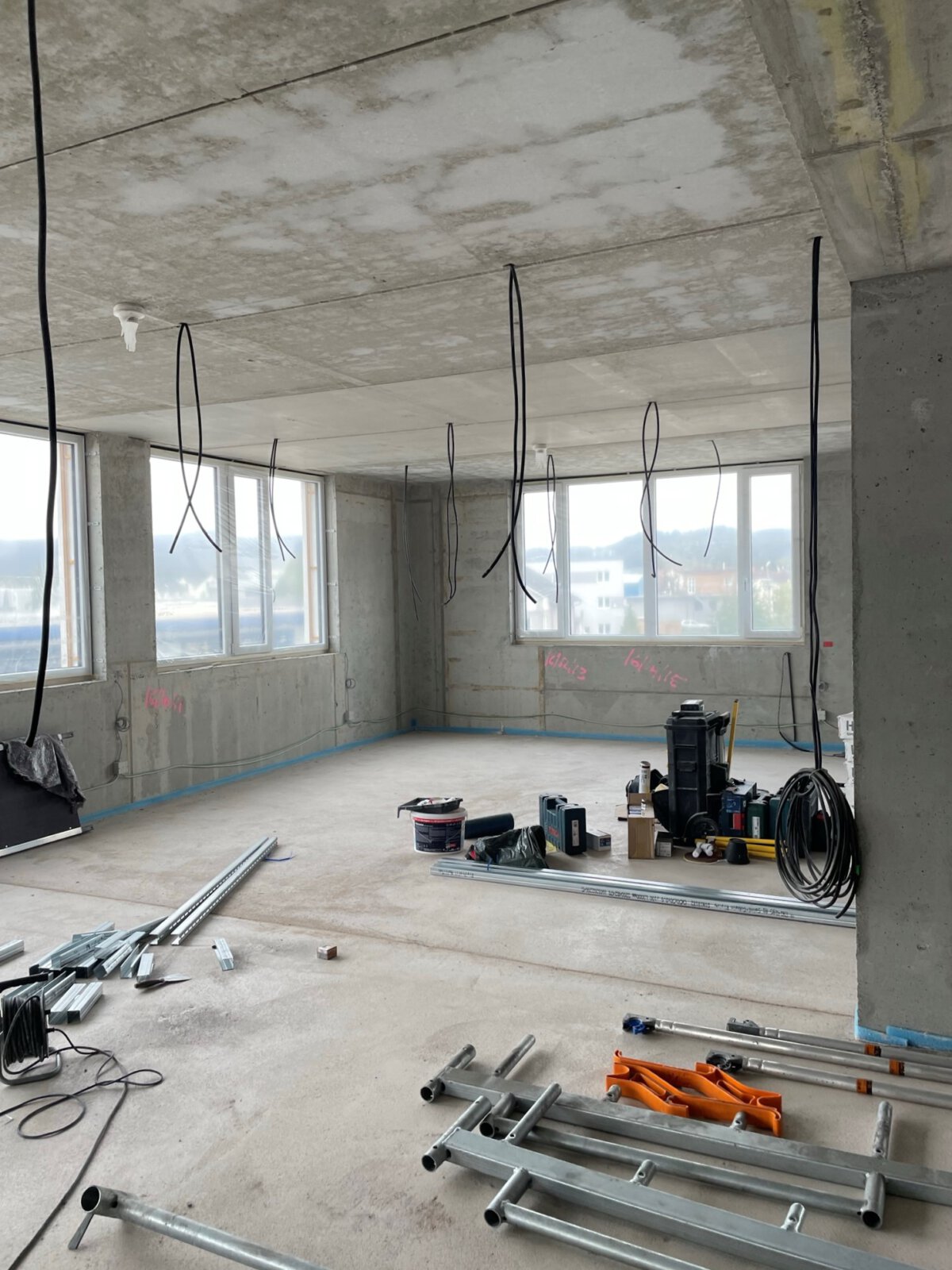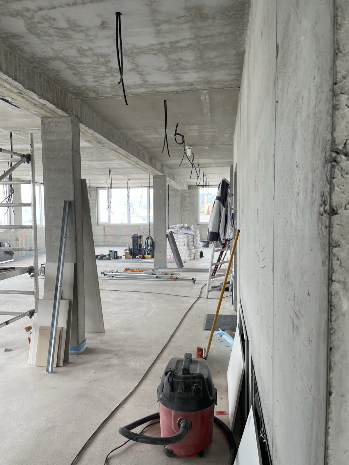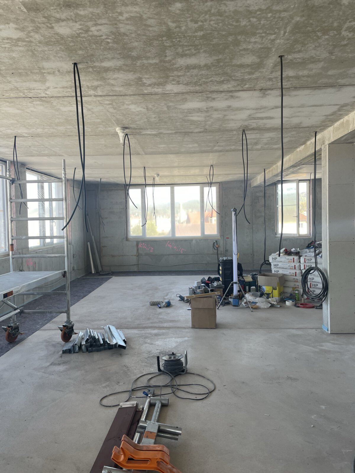 Der Baubeginn fand- wie bereits in dem umfangreichen Projektablaufplan, der im Herbst letzten Jahres in gemeinsamer Abstimmung mit dem Bauherrn erstellt wurde, vorgesehen- planmäßig Anfang April dieses Jahres statt. Zunächst wurde das Gebäude komplett entkernt und das Material für die nächsten Wochen, was bereits im Vorfeld langfristig vorbestellt und damit für unseren Auftraggeber gesichert war, in das Objekt eingebracht, sodass die anstehenden Arbeiten ohne jegliche Verzögerungen aufgrund der derzeitigen generellen Materialknappheit und der derzeitigen generellen Lieferverzögerungen bei nahezu allen Baustoffen, fortgesetzt werden können.