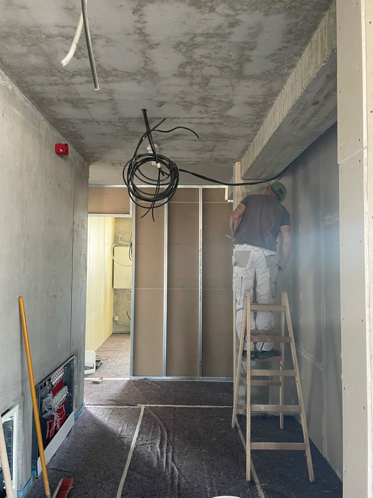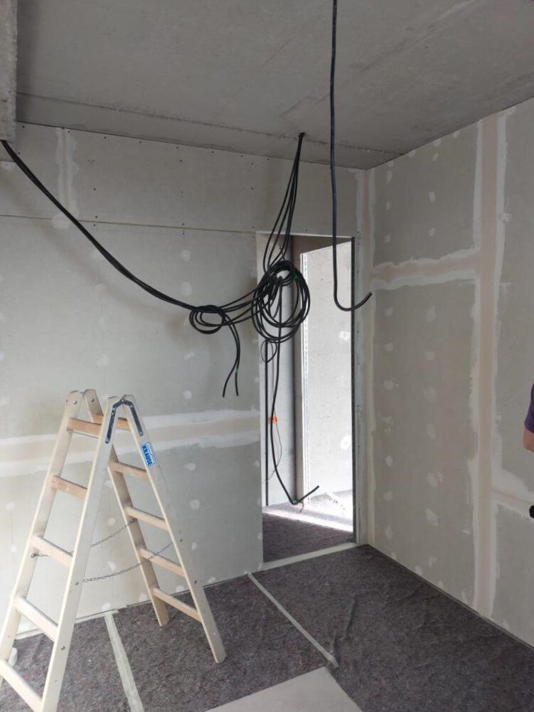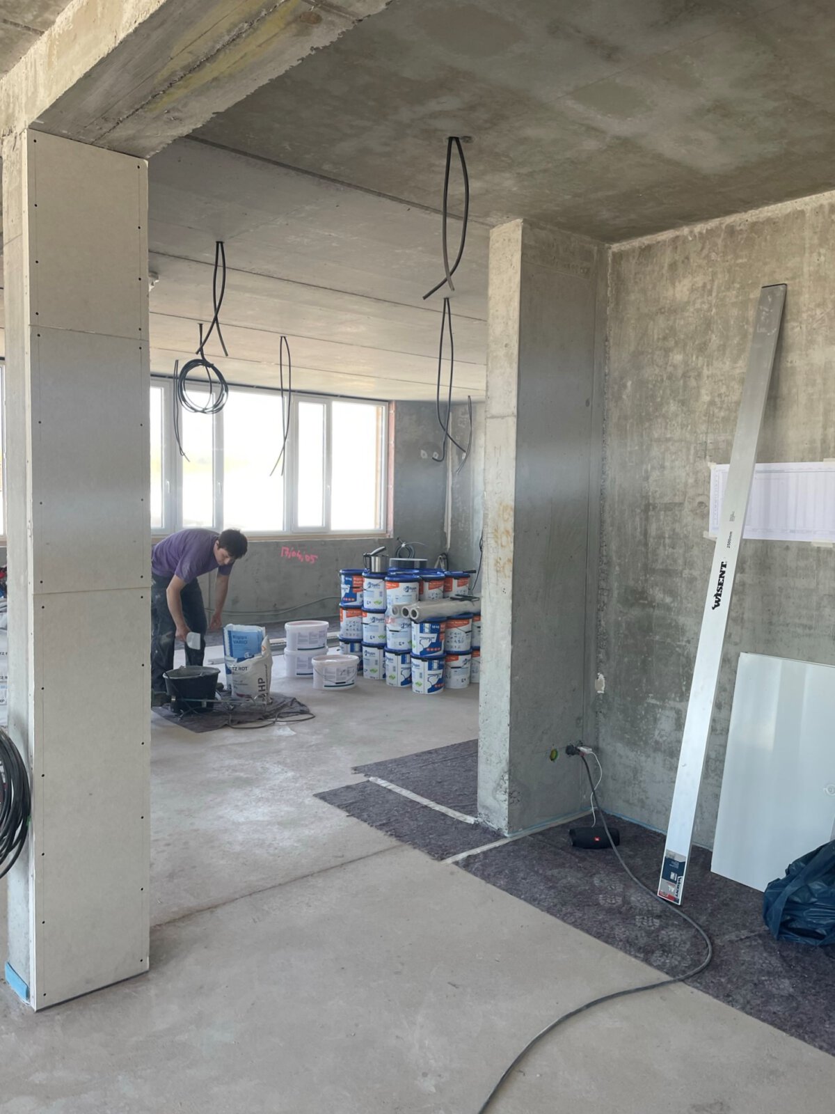 Der Baubeginn fand- wie bereits in dem umfangreichen Projektablaufplan, der im Herbst letzten Jahres in gemeinsamer Abstimmung mit dem Bauherrn erstellt wurde, vorgesehen- planmäßig Anfang April dieses Jahres statt. Zunächst wurde das Gebäude komplett entkernt und das Material für die nächsten Wochen, was bereits im Vorfeld langfristig vorbestellt und damit für unseren Auftraggeber gesichert war, in das Objekt eingebracht, sodass die anstehenden Arbeiten ohne jegliche Verzögerungen aufgrund der derzeitigen generellen Materialknappheit und der derzeitigen generellen Lieferverzögerungen bei nahezu allen Baustoffen, fortgesetzt werden können.