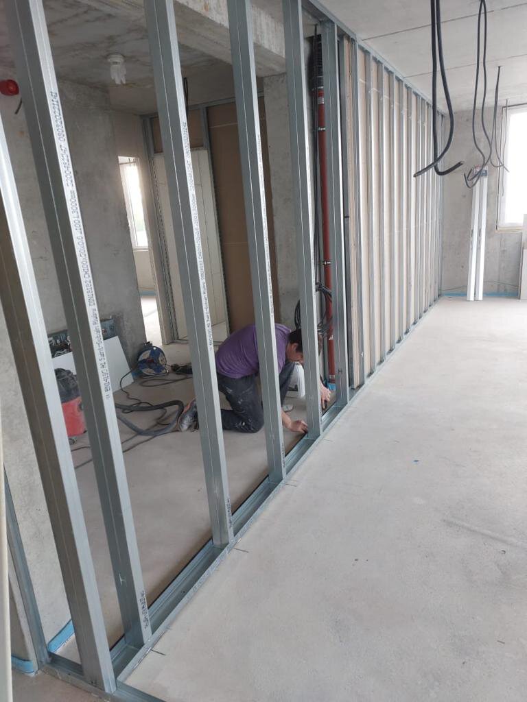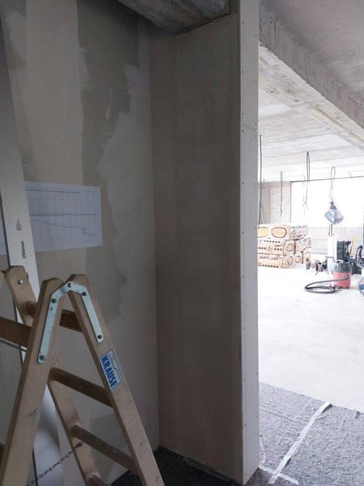 Parallel wurden nach der jeweiligen Fertigstellung der einzelnen Ausführungsplanungen und Leistungsverzeichnisse bereits die Ausschreibungen für die einzelnen Gewerke vorgenommen und verschiedene Angebote von Handwerkern aus dem raum in form- Netzwerk eingeholt. Bezüglich eines Großteils der auszuführenden Bauleistungen wie Rohbau, Trockenbau, Sanitär, Maler- und Verputzerarbeiten sowie den Bodenverlegearbeiten entschied sich unser Auftraggeber, raum in form- Objekteinrichtungen als Generalunternehmer für diese Gewerke zu beauftragen.