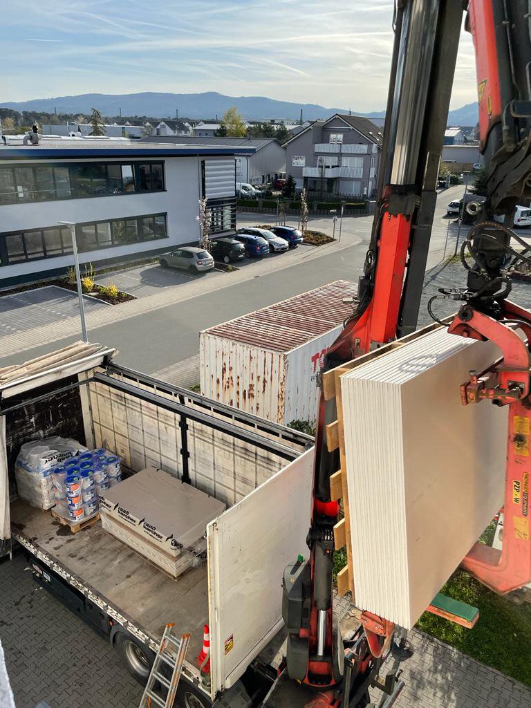 Zusätzlich wurden in den letzten Wochen sämtliche weiteren für die Modernisierung der beiden Bürogebäude im weiteren Bauverlauf notwendigen Materialien bestellt und in das raum in form- Baustofflager in Heppenheim geliefert, wo diese für den weiteren Bauverlauf vorgehalten werden und auf Abruf zur Verfügung stehen.