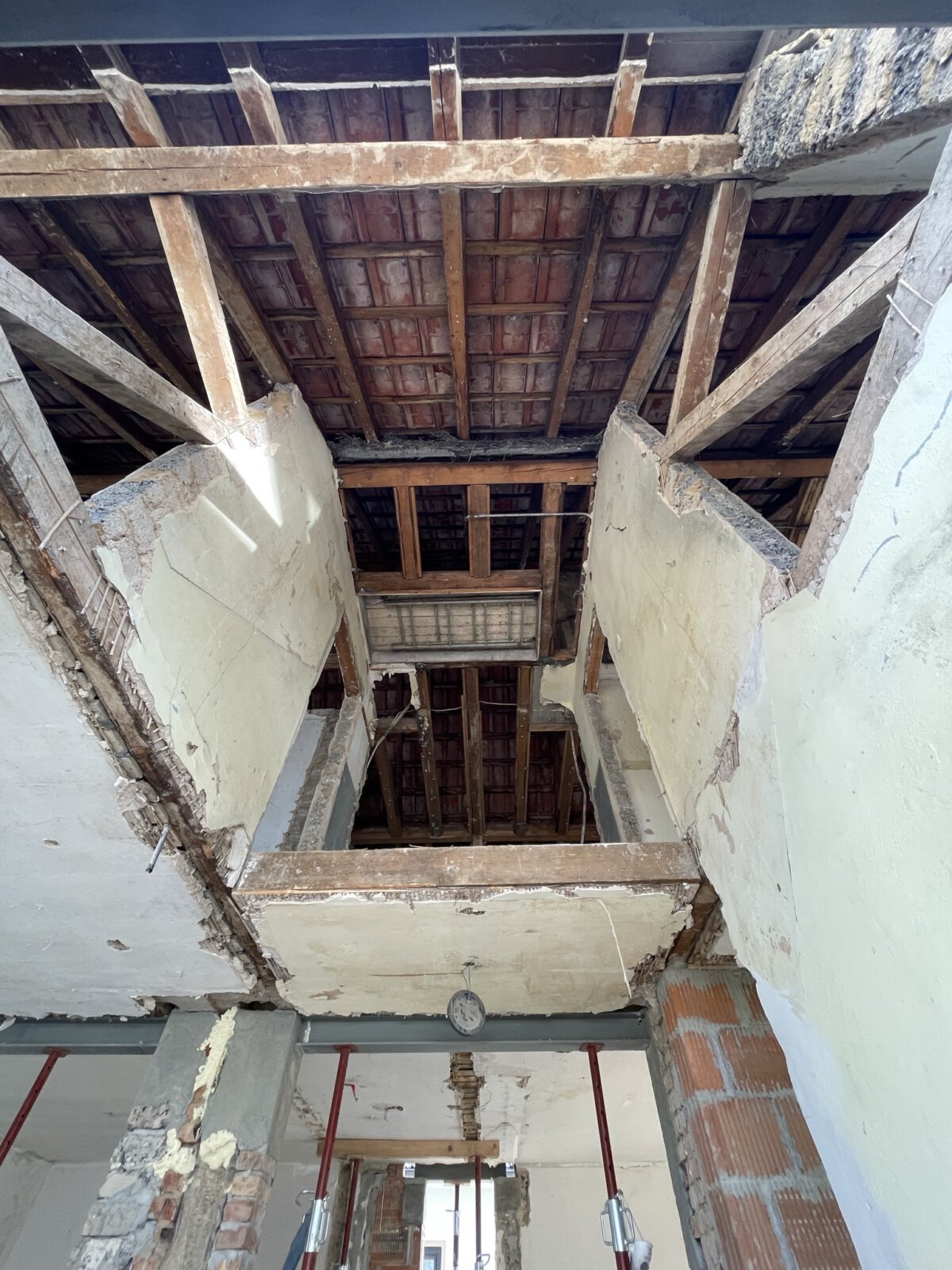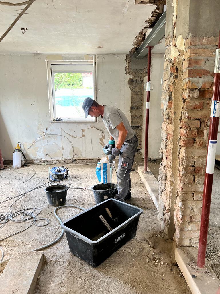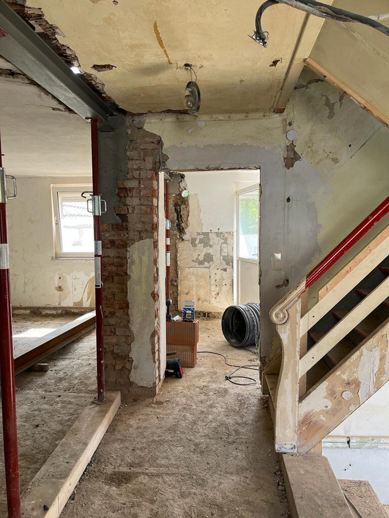 Beauftragung der Sanierungs- und Modernisierungsarbeiten an die raum in form- Bau- und Sanierungsgesellschaft mbH Ende Juli dieses Jahres, Baubeginn am 08.08.2022 mit dem Beginn der Abbruch- und Entkernungsarbeiten, aktueller Bautenstand: