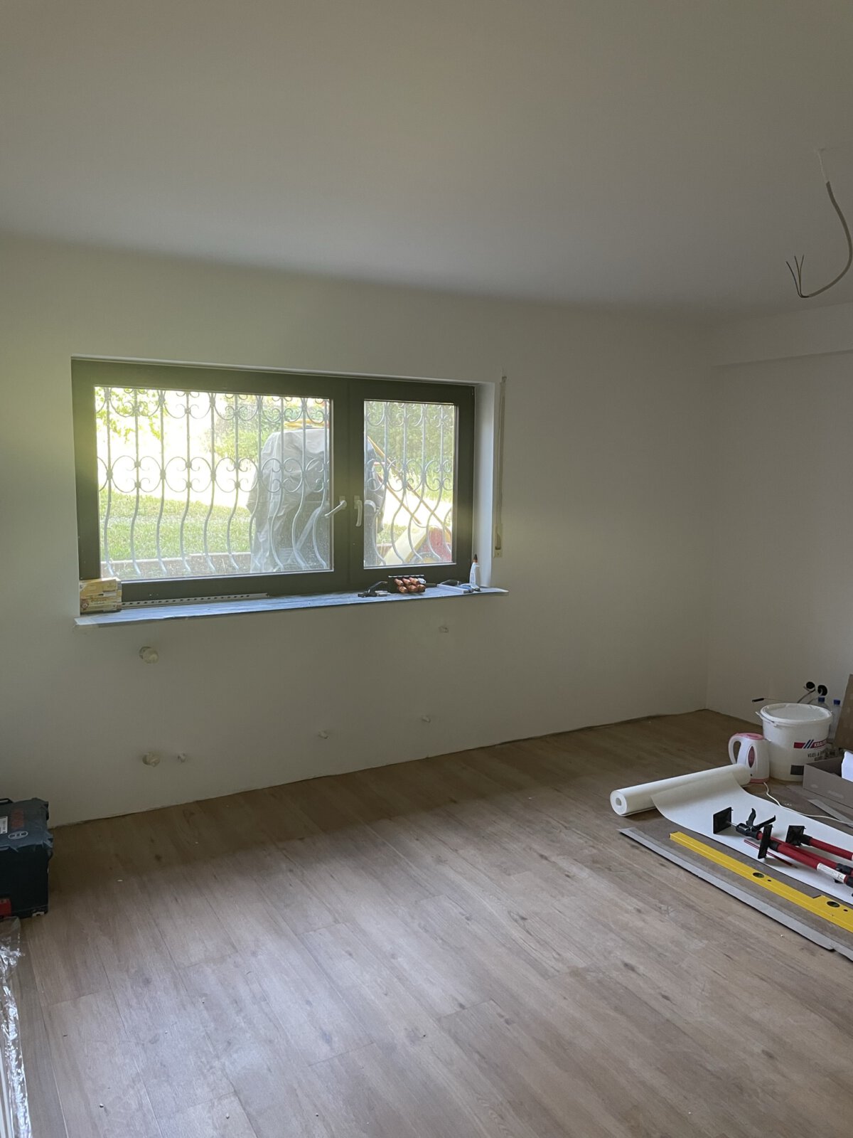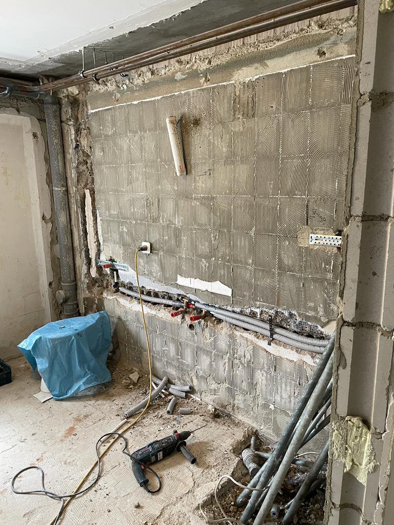• Beginn der Elektroarbeiten (Elektroinstallationen, Leitungen prüfen, Schlitze herstellen, neue Kabel verlegen, neue Schaltkreise)