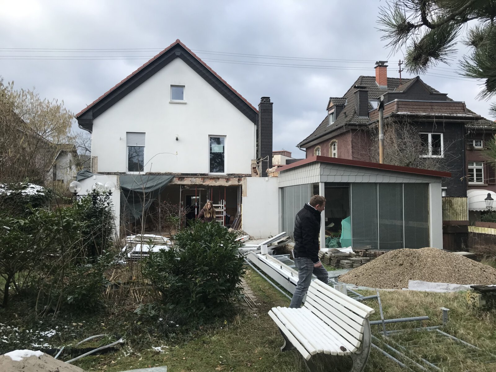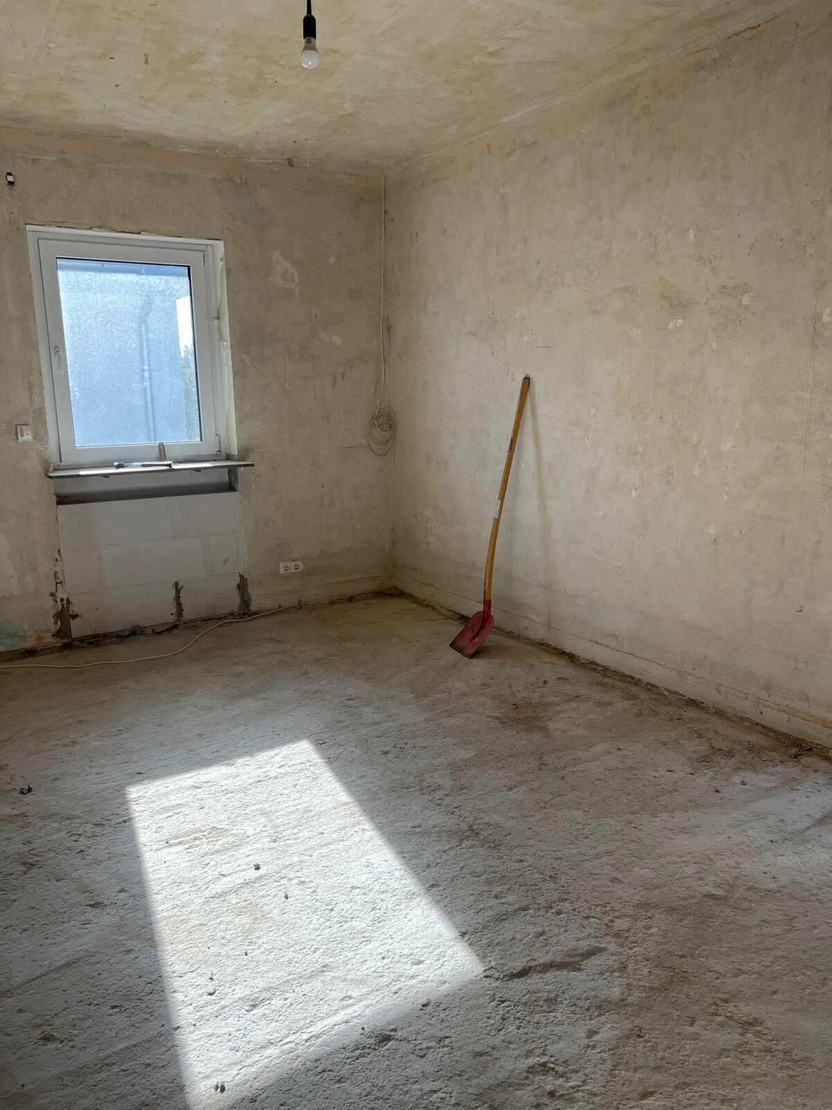 - Entfernung der Bodenbeläge im Erdgeschoss (Estrich und Fliesen)