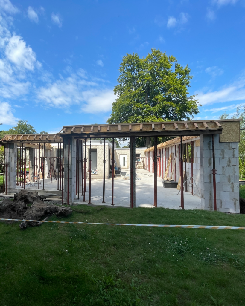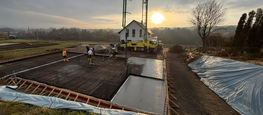 Aktueller Bautenstand bei dem Neubau eines großzügigen Einfamilienhauses im Brutalismus-Stil im Raum Alzey-Worms…