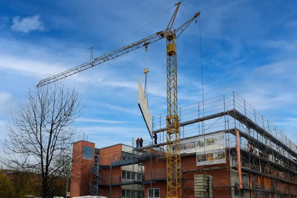 Aktueller Bautenstand der Erweiterung und Aufstockung eines Schulungszentrums mit großzügiger Dachterrasse im Raum Aschaffenburg…