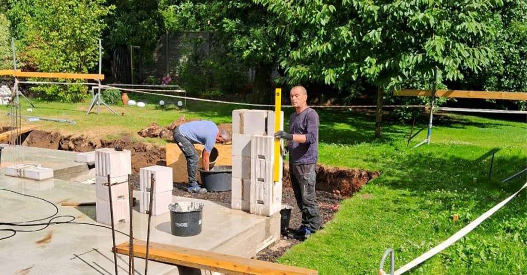 Durchführung der Grob- und Feinabsteckung Verteilen und Verdichten des Schotters Herstellen, Ausrichten und seitliches Verstärken der Schalung für die Bodenplatte Verlegen der Entwässerungsleitung Bewehren der Bodenplatte Herstellen der Bewehrungsanschlüsse für die Stützen Ausrichten der Abwasserleitungen für den Betoneinbau Ausschalen der Bodenplatte und Reinigen der Schalung Verlegen der ersten Steinlage im Mörtel, lot- und waagerecht Aufmauern […]