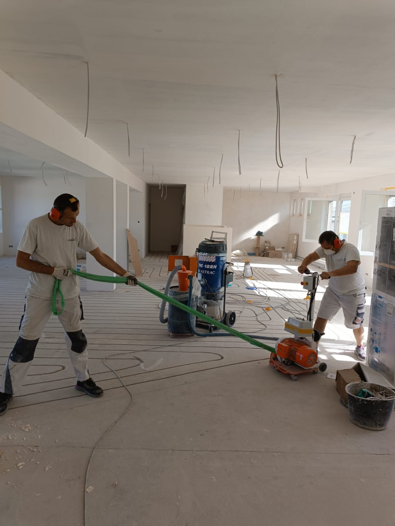 Einfräsen der Fußbodenheizung in den Bestandsestrich Lieferung und Montage der Glas-Trennwände für sämtliche Bürobereiche Vorbereitung für den neuen Akustik-Putz an den Decken Fertigstellung der neuen Elektroinstallation Spachtelung sämtlicher Wände in Q3-Qualität
