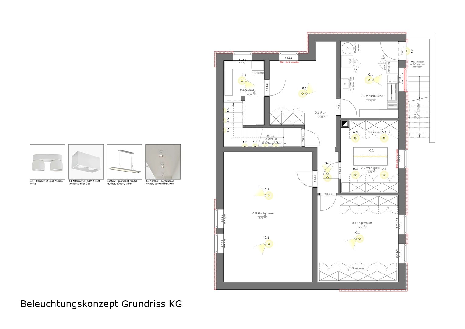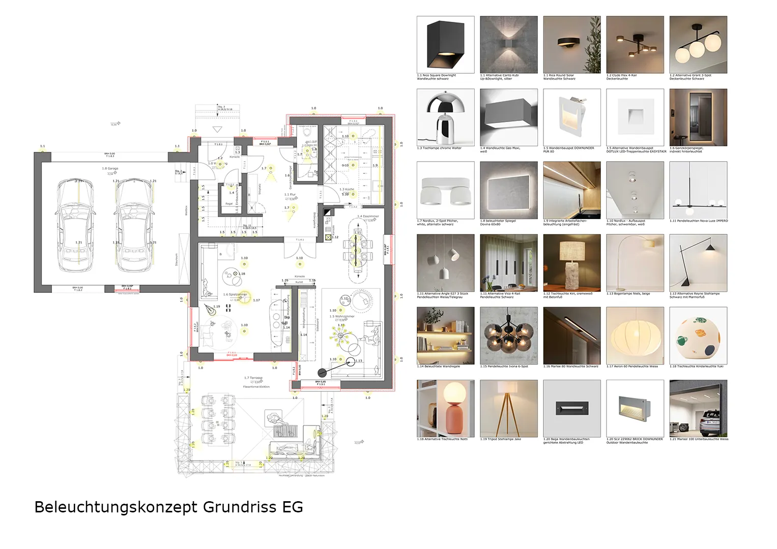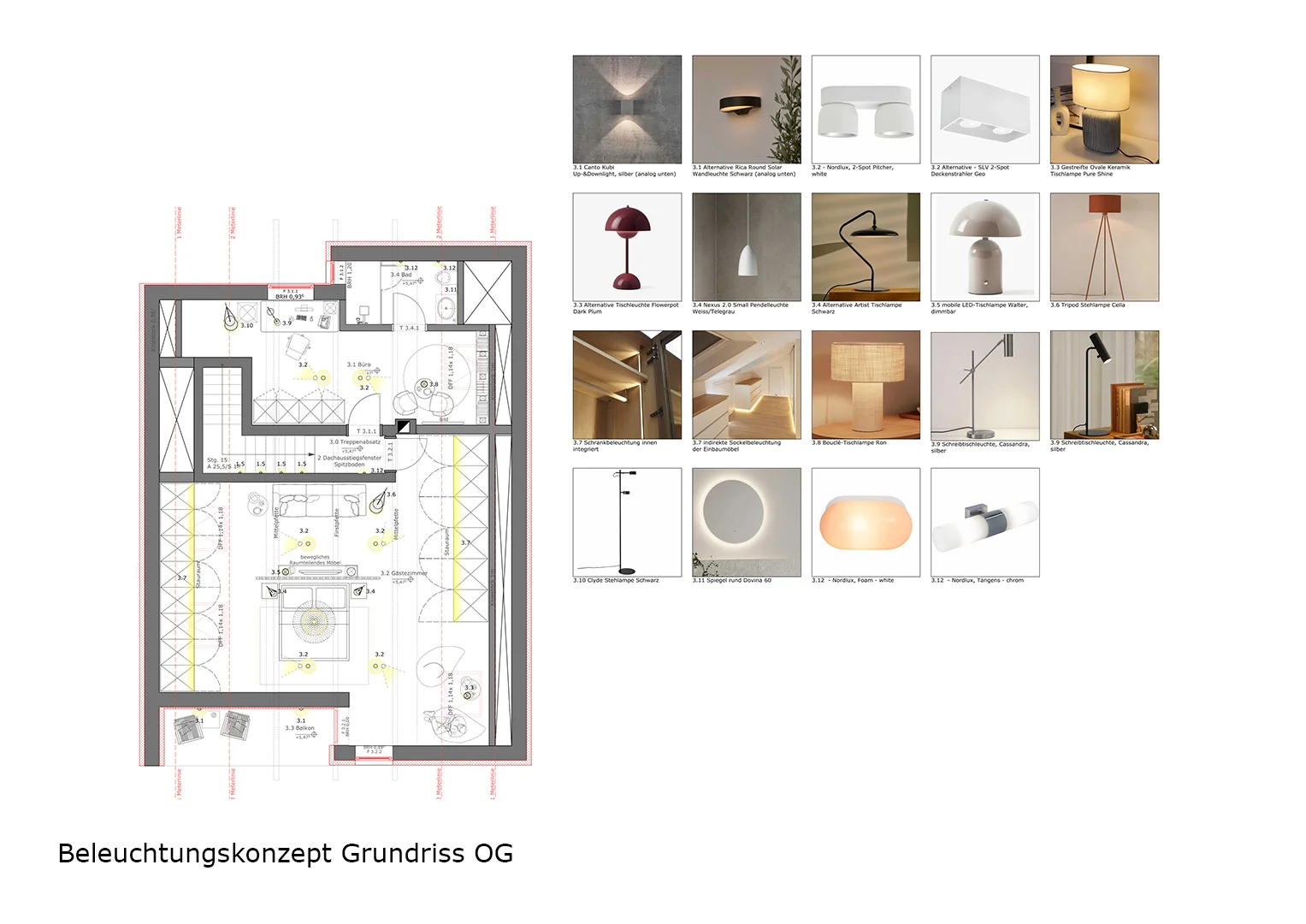 Flankierend zur architektonischen Neukonzeption entwickelte „raum in form– Innenarchitektur & Architektur“ ein ebenenübergreifendes Beleuchtungskonzept. Im Erdgeschoss erfolgt eine komplette Neuinterpretation der Lichtführung, die den Wohn- und Essbereich strukturiert und Kunstwerke, Regale sowie die Treppenanlage durch Akzentbeleuchtung gezielt inszeniert. Im neu ausgebauten Dachgeschoss sorgen dezent positionierte Leuchten unterhalb der Kehlbalkenlage sowie eine indirekte Beleuchtung der Einbauschränke für eine harmonische Raumwirkung. Die Integration einer indirekten Beleuchtung in die Hochbeete der Terrasse schafft zudem einen fließenden visuellen Übergang zwischen Innen- und Außenraum in den Abendstunden.