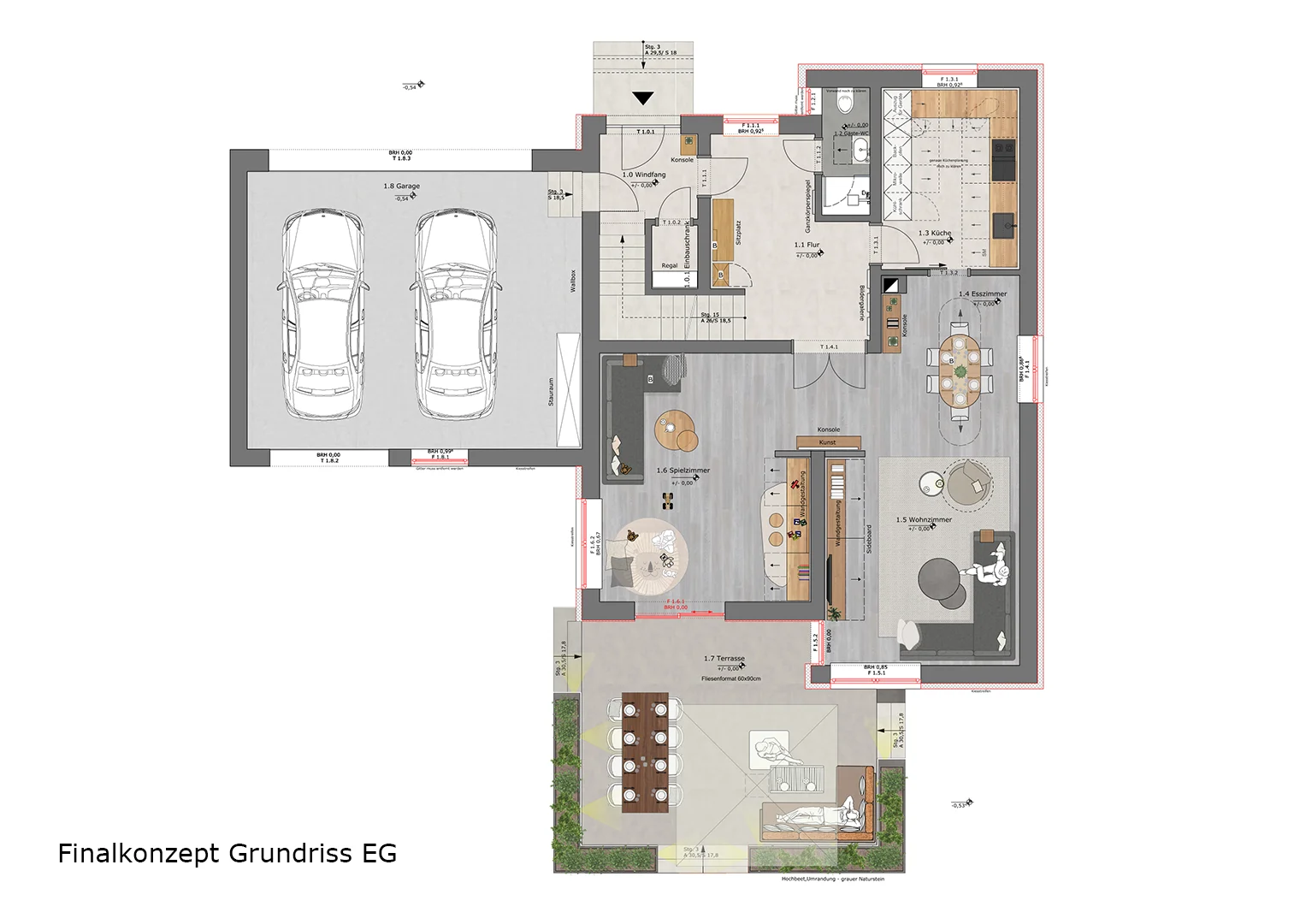 Nach intensiver Abwägung der räumlichen und funktionalen Qualitäten entschied sich die Bauherrschaft für eine maßgeschneiderte Synthese beider Entwürfe.