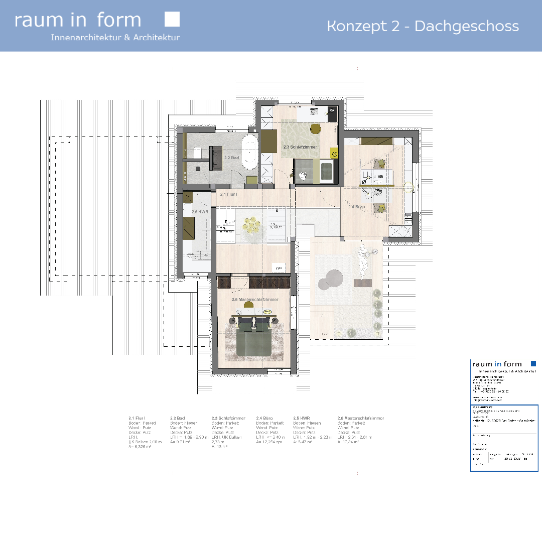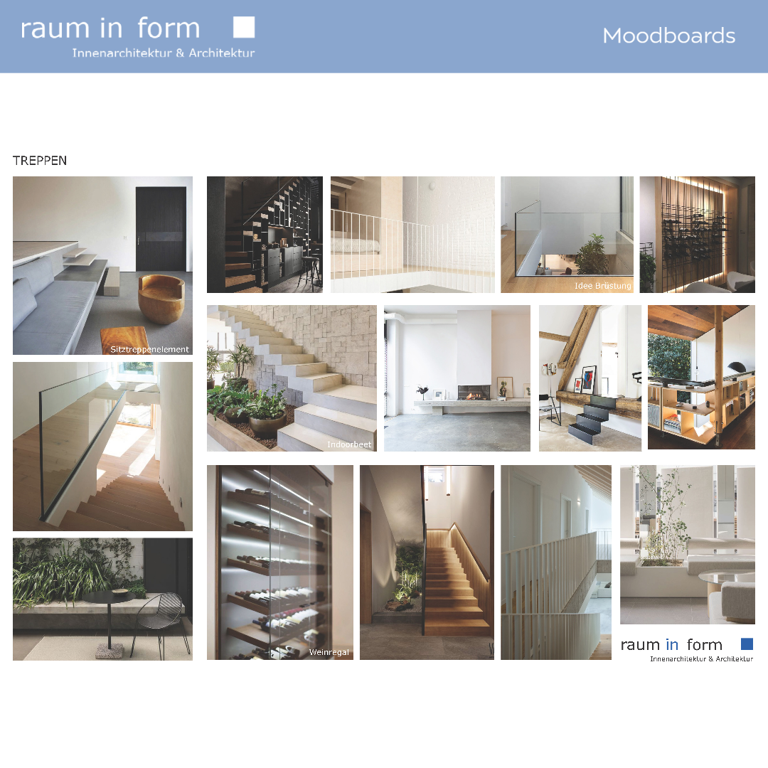 In einem ausführlichen Konzept- Brainstorming und unter Berücksichtigung der von den Bauherren definierten Wünsche und Anforderungen, entwickelt das raum in form- Projektteam mehrere kreative und individuelle Ansätze zur innenarchitektonischen Gestaltung des in „Split-Level-“ Bauweise in den 1980-er Jahren errichteten Fachwerkhauses. Die im Anschluss erarbeiteten individuellen Konzeptentwürfe für die Modernisierung des Fachwerkhauses wurden den Bauherren nur zwei Monate nach der Auftragserteilung in einer umfangreichen Konzeptvorstellung und in Verbindung mit der Präsentation der ganzheitlichen Material-, Produkt- und Farbvorschläge präsentiert.