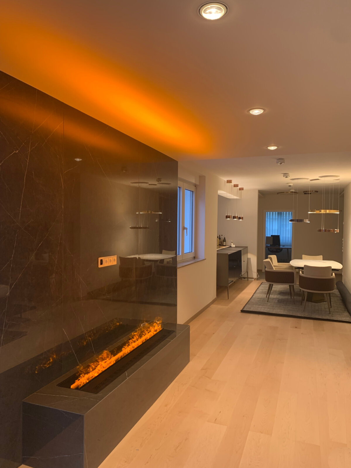 - Lieferung, Montage, Anschluss und Einstellung des wasserführenden Elektrokamins