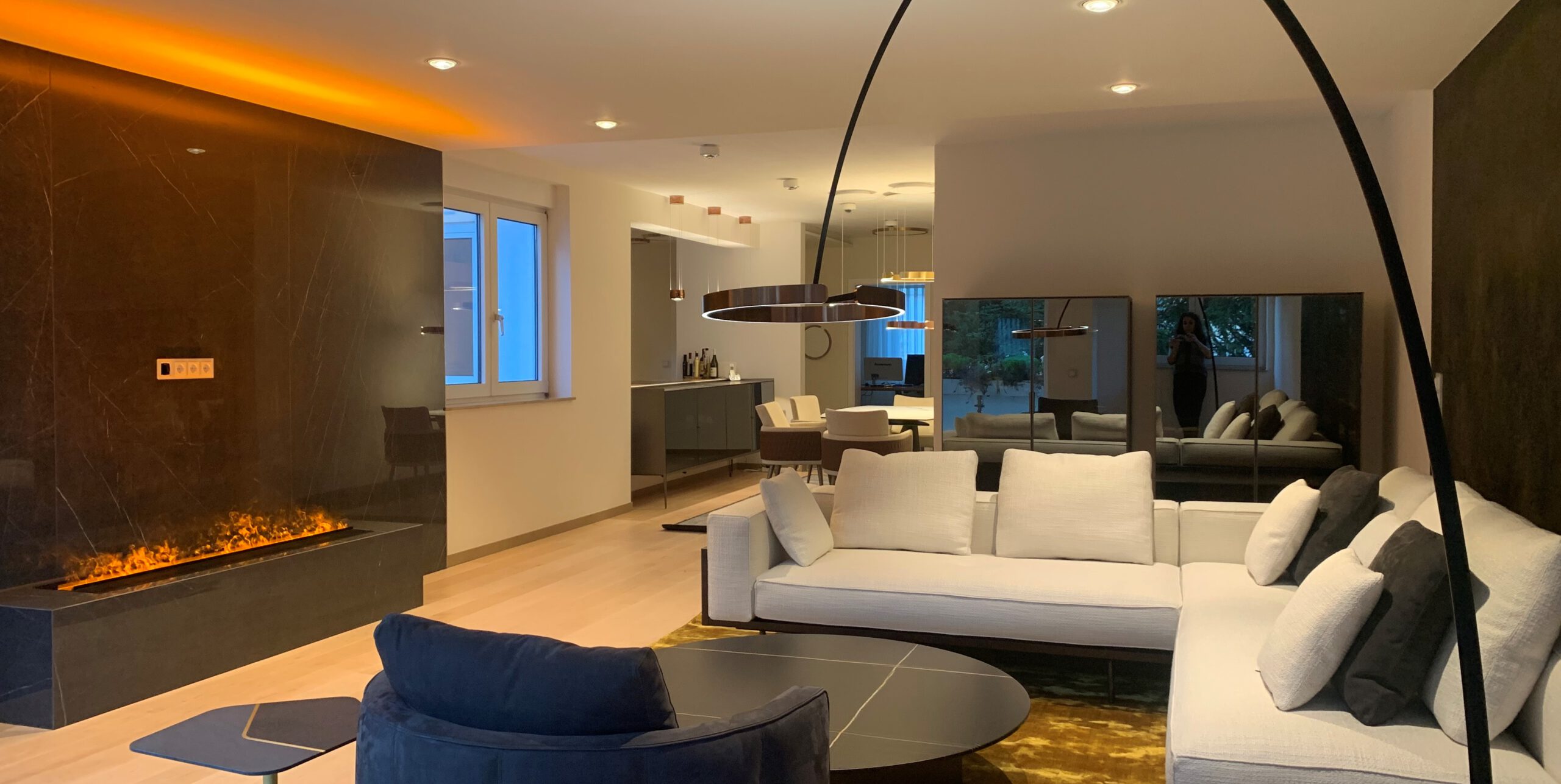 - Lieferung und Aufbau der vor Ort in Italien gemeinsam mit den Kunden ausgesuchten und individuell bemusterten komplett neuen Einrichtung von Minotti, Reflex und Rimadesio durch raum in form-Objekteinrichtungen