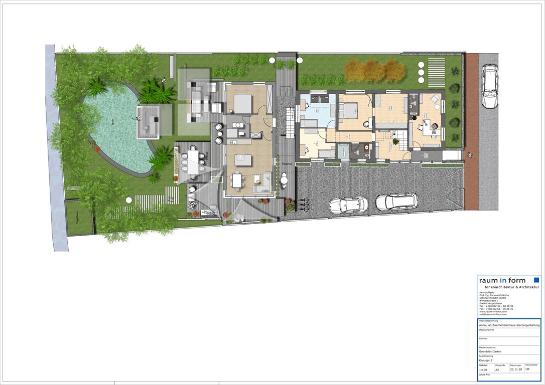 Nach der Auftragserteilung, die z. B. in einem ersten Schritt die Grundlagenerarbeitung (zu der z. B. erste Gespräche mit den genehmigungsrelevanten Behörden wie dem Bauamt gehören) sowie ein Aufmaß des Bestandsgebäudes oder des zu bebauenden Grundstücks umfassen kann, beginnt das meist mehrköpfige Projektteam unter der Leitung eines erfahrenen Architekten oder Innenarchitekten mit der Entwicklung verschiedener Konzeptionen.