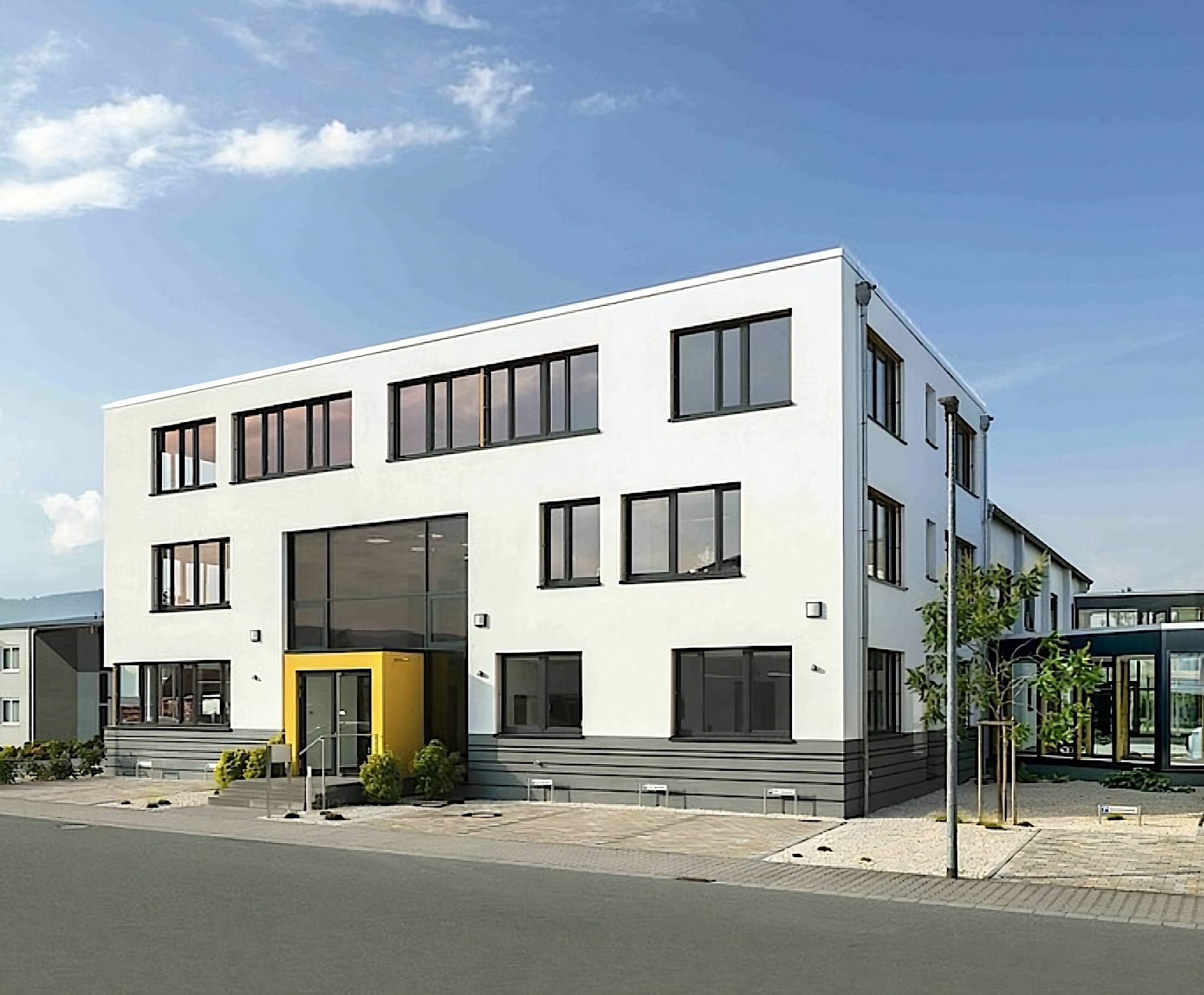 Bei der Konzepterstellung der beiden Gebäude, die aus unterschiedlichen Baujahren stammen, sollte die Fläche des 1. Bauabschnitts in eine Open Space- Fläche mit einem flexibel abtrennbaren Besprechungsraum und drei Einzelbüros für die Geschäftsleitung und das Personalmanagement umgewandelt werden. Ergänzend wurden die Flächen im Gebäudeteil der weiteren Bauabschnitte mit weiteren Arbeitsplätzen im Open Space- Konzept entwickelt und mit einer großzügigen Kantine, die Platz für 64 Mitarbeiter bietet und flexibel für Veranstaltungen genutzt werden kann, ausgestattet.