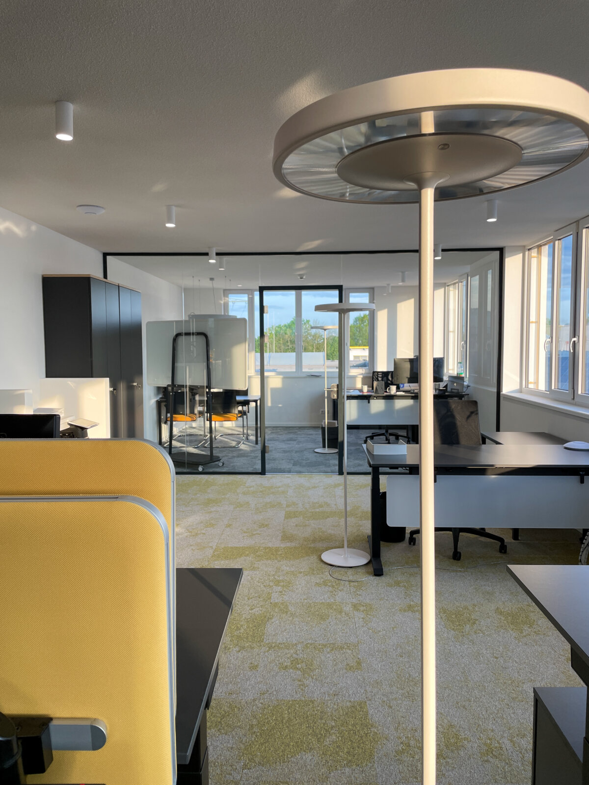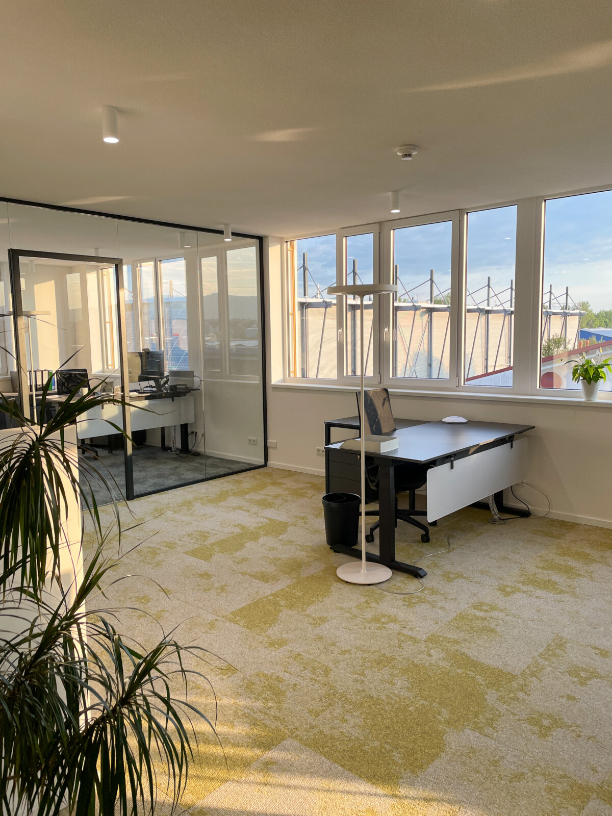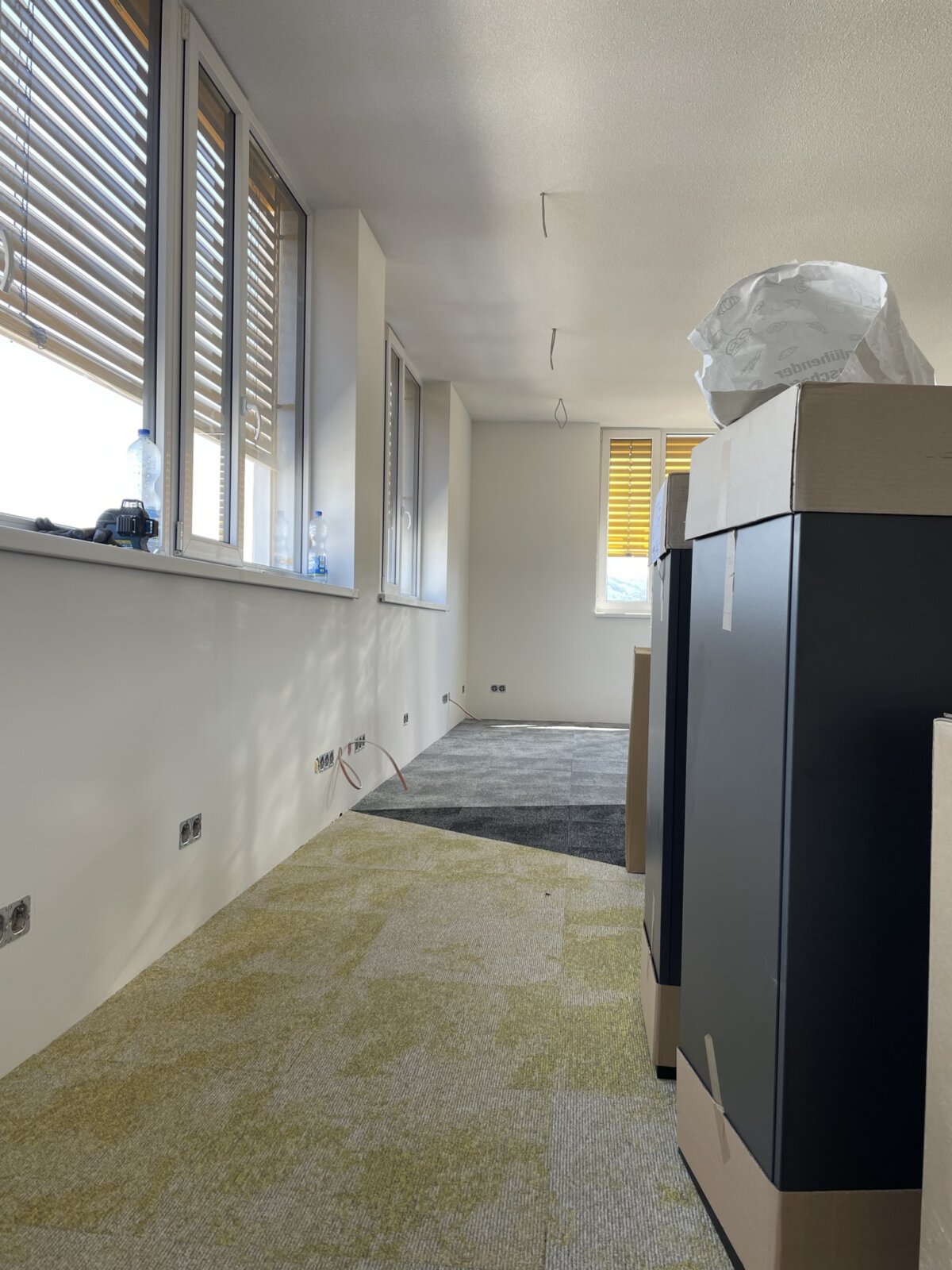 Sämtliche Bauleistungen wurden innerhalb des vor Baubeginn erarbeiteten engmaschigen Bauzeitenplans erbracht- das Objekt wurde nach Fertigstellung der Bauleistungen in den letzten zwei Wochen von raum in form- Objekteinrichtungen unter der Leitung der Unternehmensinhaberin, der Innenarchitektin Kerstin Bertz- Helmbrecht, komplett neu eingerichtet. Sämtliches neues Mobiliar wurde frühzeitig ausgewählt, bestellt und in das raum in form- Zentrallager in Heppenheim geliefert, so dass die Lieferung und Einrichtung des 1. Bauabschnitts des Bürogebäudes ohne jegliche Verzögerungen direkt nach Fertigstellung der Baumaßnahmen erfolgen konnte und die Büros zwei Wochen vor dem geplanten Einzugstermin im September 2022 bezogen werden konnten.