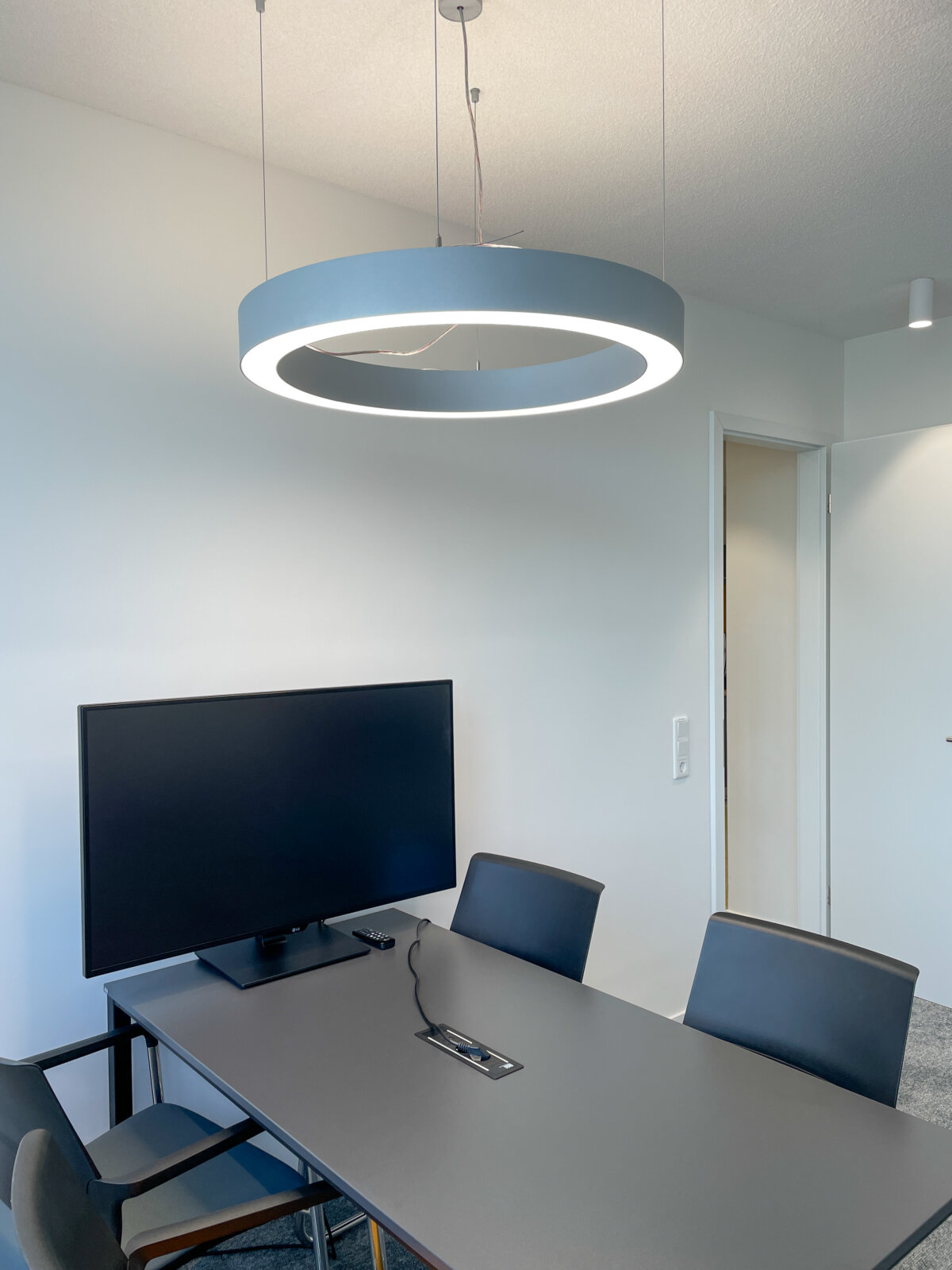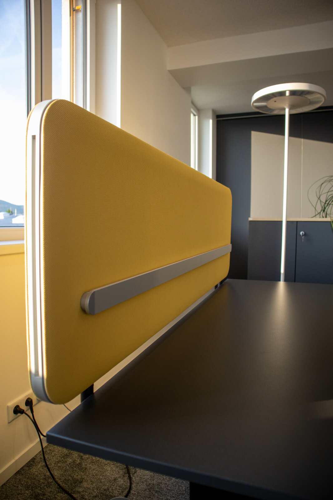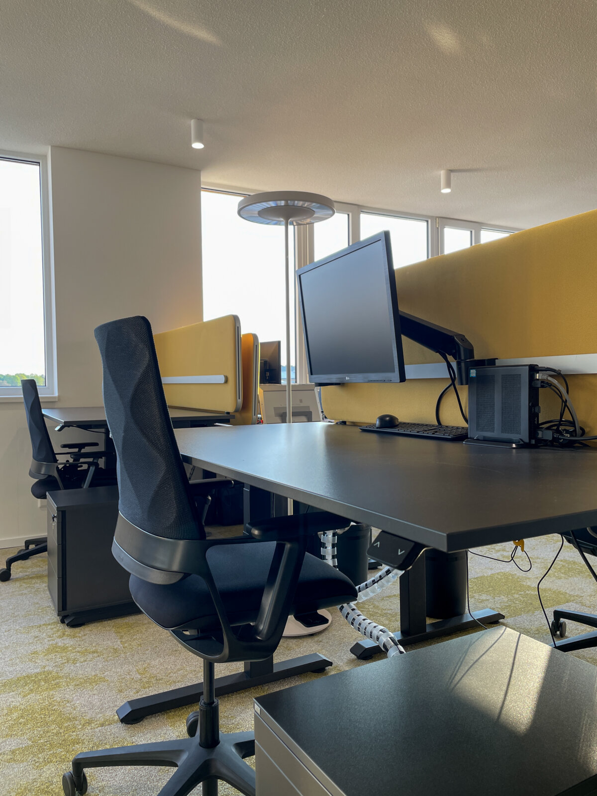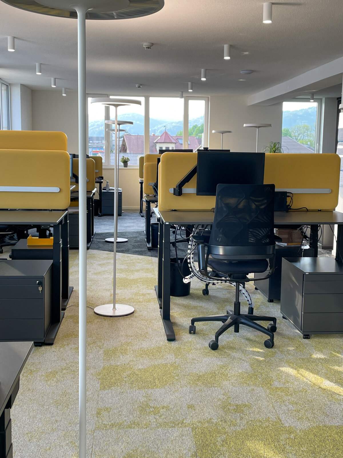 Die von dem raum in form- Projektteam erstellten Einrichtungsplanungen konnten ganzheitlich aus dem raum in form- Objekteinrichtungen- Herstellernetzwerk angeboten und geliefert werden. So konnte die Beleuchtung, das gesamte Büro-Einrichtungsmobiliar, der Fußboden, die Schallschutzelemente und Ausstattungsgegenstände aus einer Hand geboten werden.