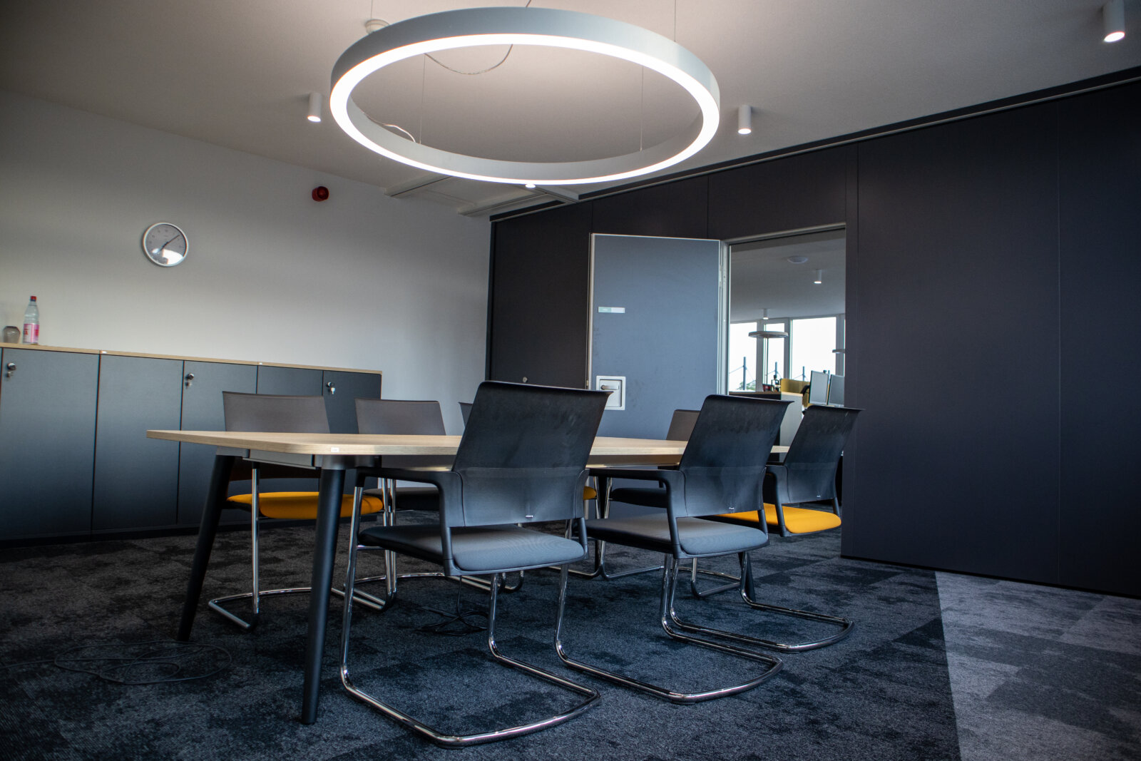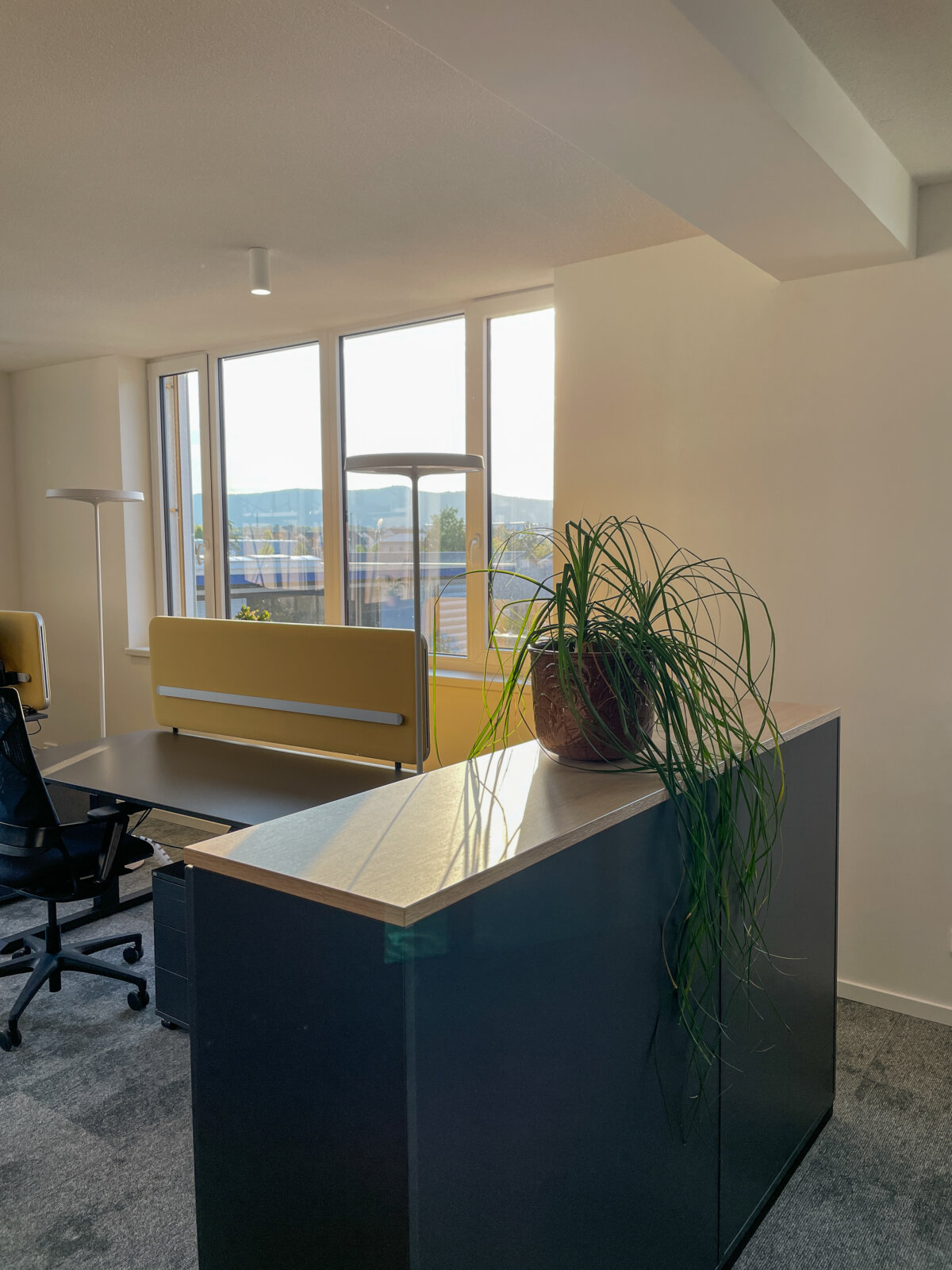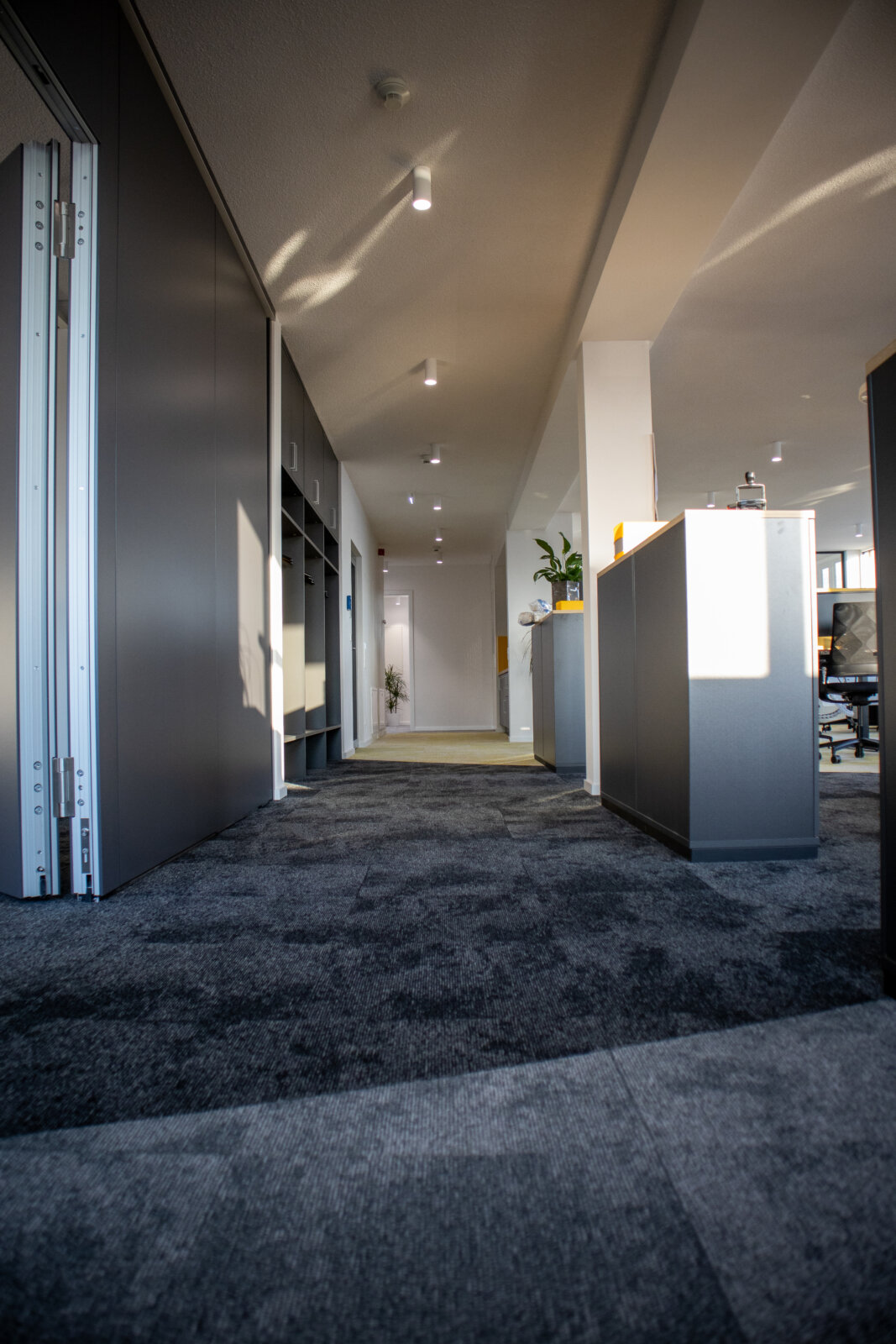 Die Flächen der Open Space- Nutzung wurden ebenfalls in Verkehrs-, Nutzungs- und Verweilbereiche zoniert, sodass die Raumstruktur optimal genutzt werden kann und den Bedürfnissen der Mitarbeitenden entspricht. Der offene Grundriss wird durch Rückzugsmöglichkeiten wie Kurz-Meetingpoints, Kreativräume, Besprechungsräume, abschließbare Büros und Cubes ergänzt und durch Glaselemente akustisch getrennt.
