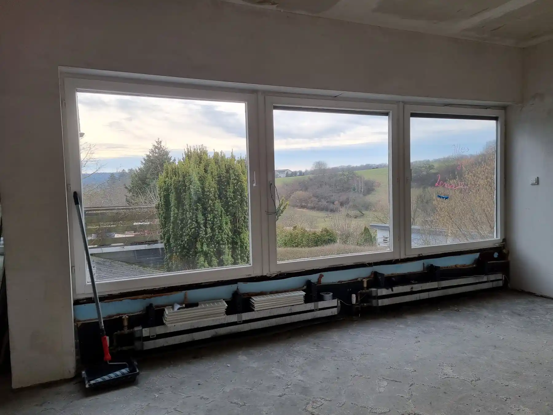 Vor dem Umbau wies das Gebäude unterschiedliche Bodenbeläge, einen unzeitgemäßen Wintergarten sowie undichte Fenster auf. Der Zugang zum Kellergeschoss erfolgte über eine schwankende Wendeltreppe, die den heutigen Anforderungen an Sicherheit und Komfort nicht mehr gerecht wurde. Auch die bestehende Fassadengestaltung mit Kellenputz und Schieferplatten entsprach nicht den modernen Vorstellungen der Bauherren.