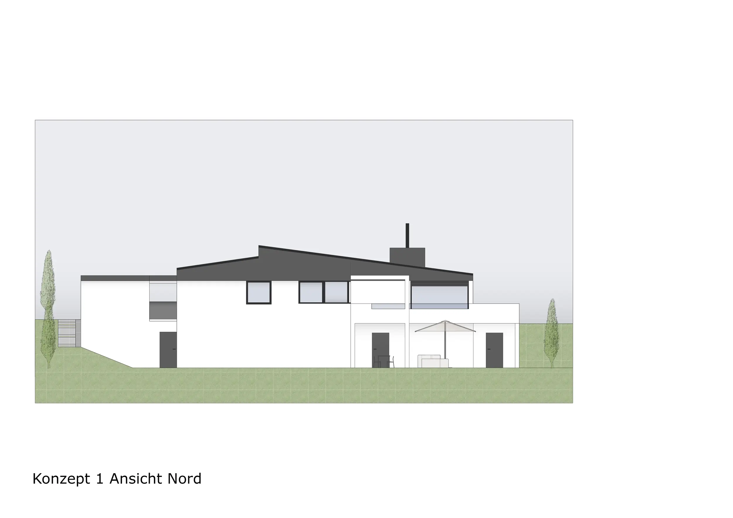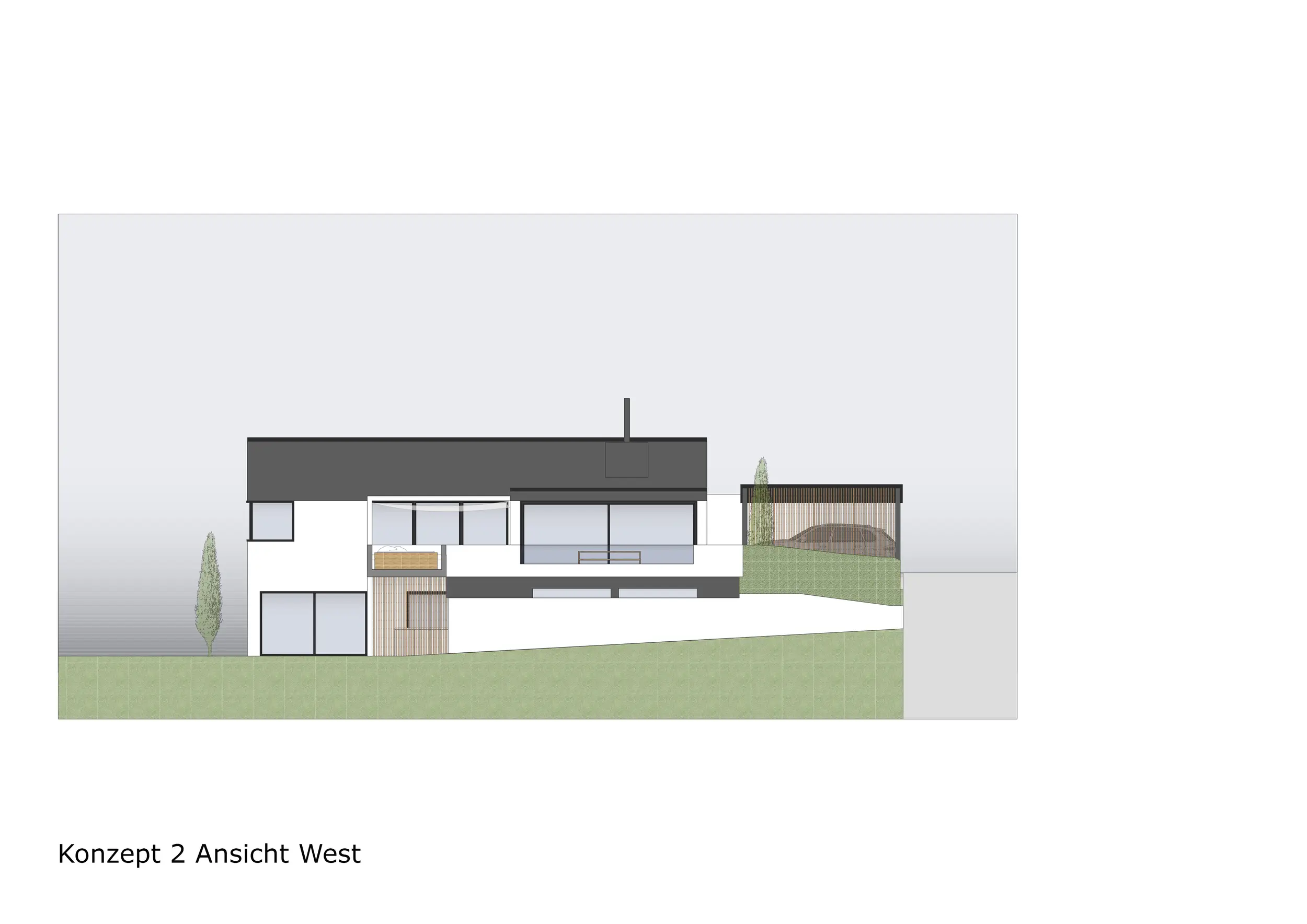 Im dritten Konzept blieb die Innenraumplanung identisch zu Konzept 2. Der wesentliche Unterschied lag in der Gestaltung des Balkons, der in seiner ursprünglichen Position beibehalten wurde. Der Zugang in den Garten erfolgt hier über eine einläufige Treppe.