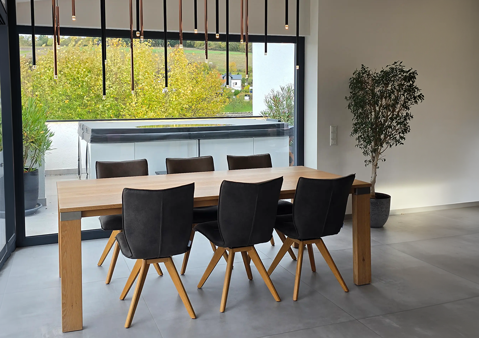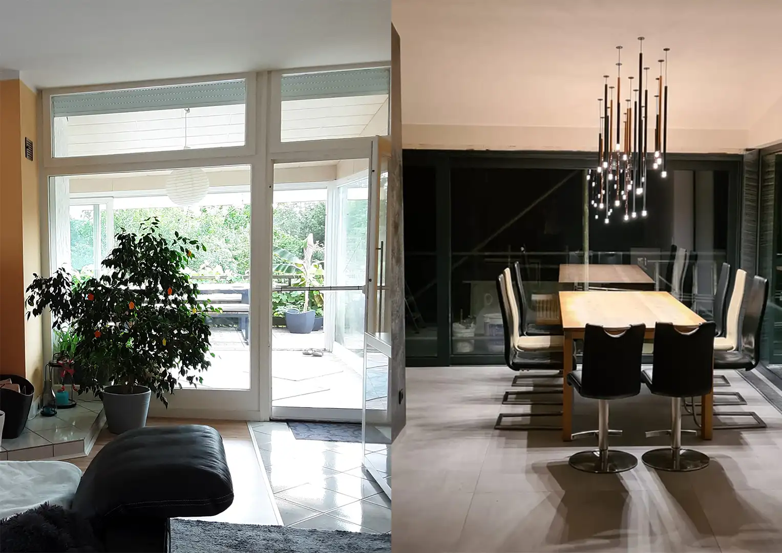 Für die Umgestaltung der eigentlichen Wohnräume im Erdgeschoss, des Wintergartens, des Balkons sowie der Außenbereiche wünschten sich die Bauherren eine ganzheitliche planerische Begleitung durch „raum in form – Innenarchitektur & Architektur“. Ziel war es, gezielt in Maßnahmen zu investieren, die sowohl dem persönlichen Geschmack der Bauherren entsprechen als auch zu einer nachhaltigen Wertsteigerung der Immobilie beitragen – unter Berücksichtigung des von den Bauherren definierten Budgets.