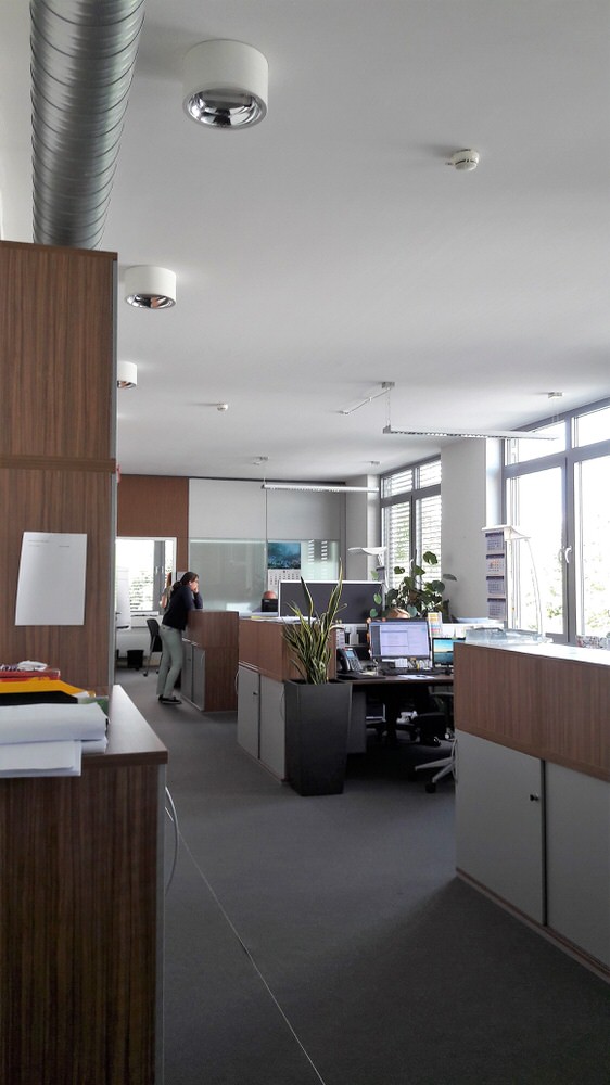 Die Fläche, in der die neuen Büroräumlichkeiten untergebracht werden sollten, wurde zunächst vollständig entkernt, da die bisherige Einteilung nicht den modernen Vorstellungen der Firmenleitung entsprach. Die einzelnen Büro- sowie Besprechungsräume sind nach den aktuellen Arbeitsschutz-, Brandschutz- und Schallschutzerfordernissen konzipiert-darüber hinaus ist ein zeitgemäßes Beleuchtungskonzept entwickelt worden, durch das verschiedene Bereiche besonders inszeniert werden. Neben der Konzeption der Modernisierungsmaßnahmen ist darüber hinaus ein ganzheitliches Einrichtungskonzept inklusive Material- und Produktvorschlägen erstellt worden, welches an die Gegebenheiten vor Ort angepasst wurde.