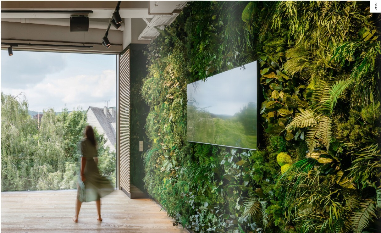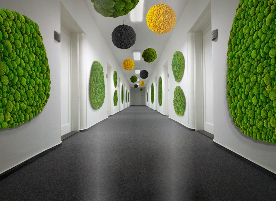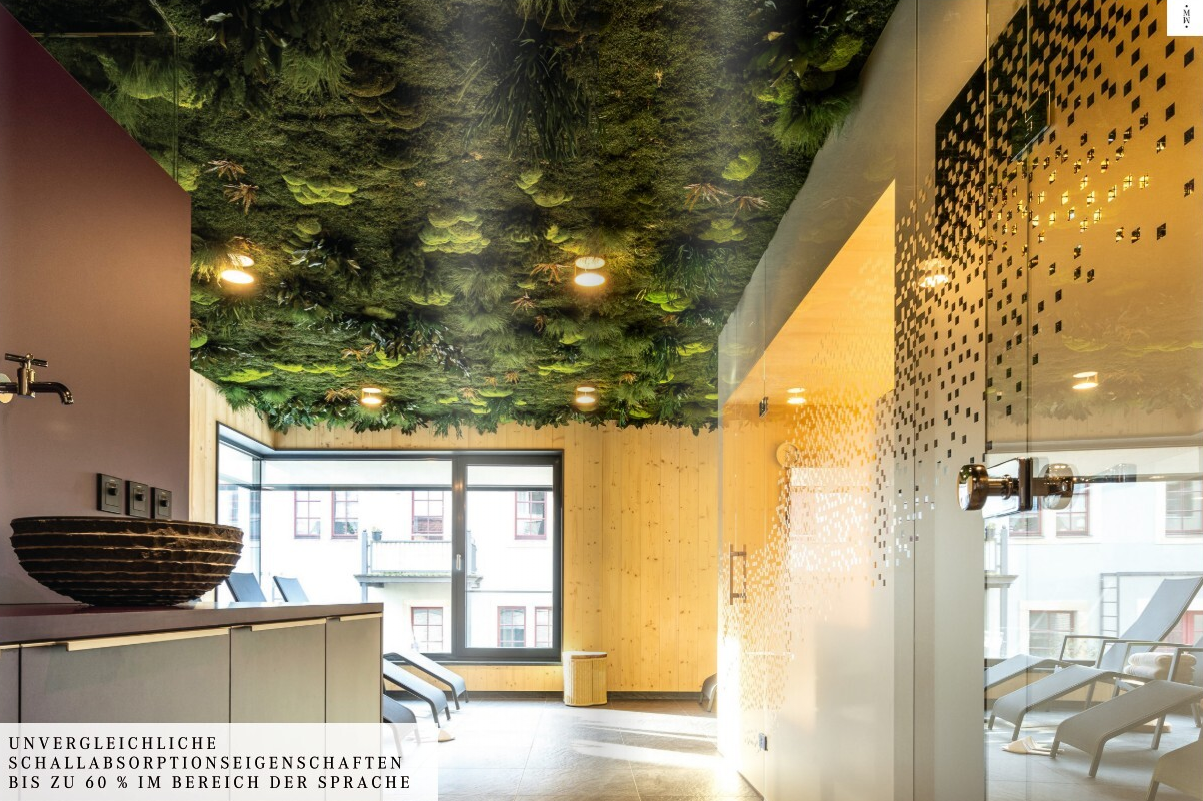 Gerade in Zeiten von Hektik und Stress suchen Menschen nach einem Ausgleich und Ruhe. In Wartebereichen, Arztpraxen oder Bürogebäuden erschafft das „Biophilic-Design,“ dank den besonderen Eigenschaften, wie einer Schallabsorption von bis zu 60% und der Regulierung der Luftfeuchtigkeit, eine unvergleichliche Wohlfühlatmosphäre.