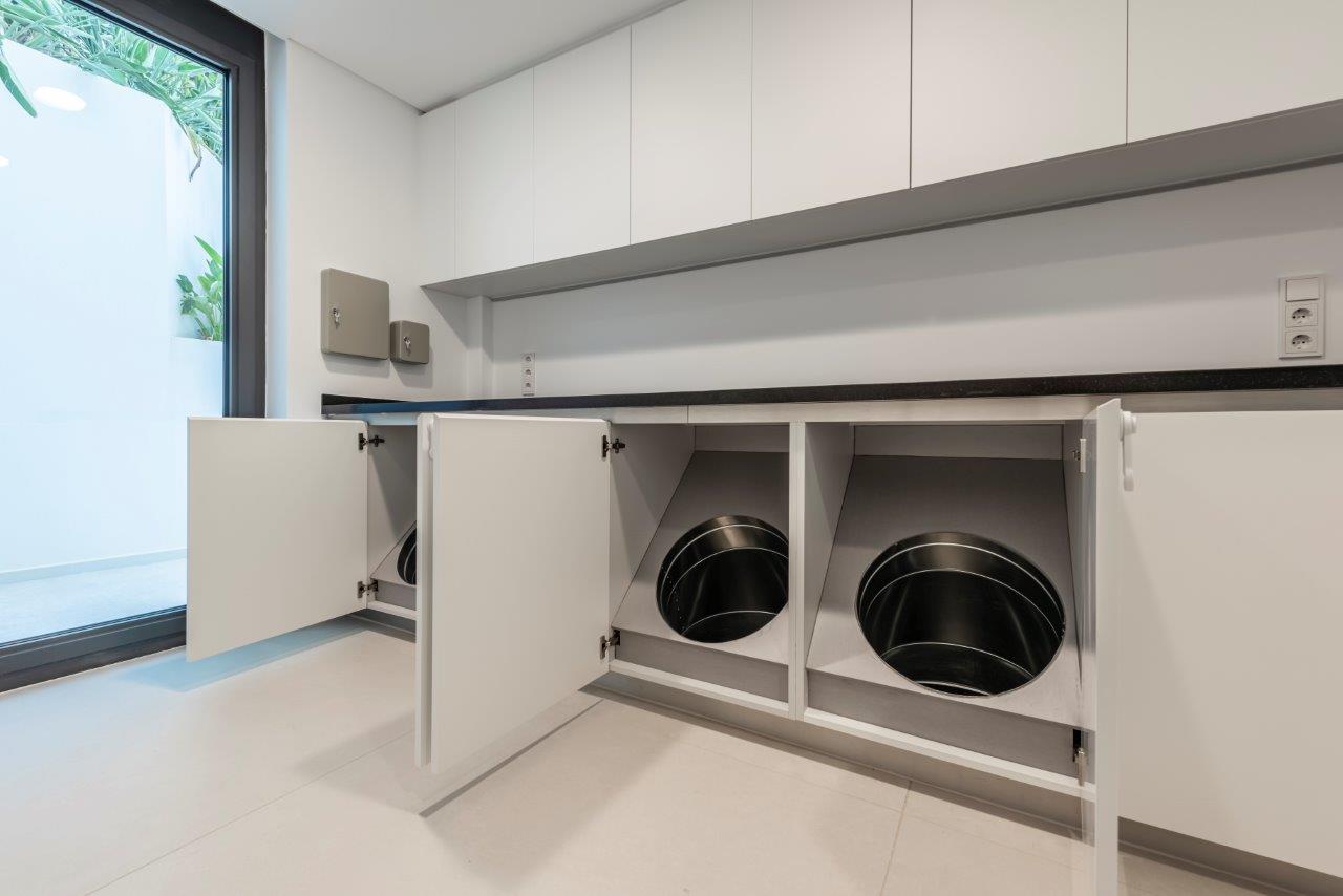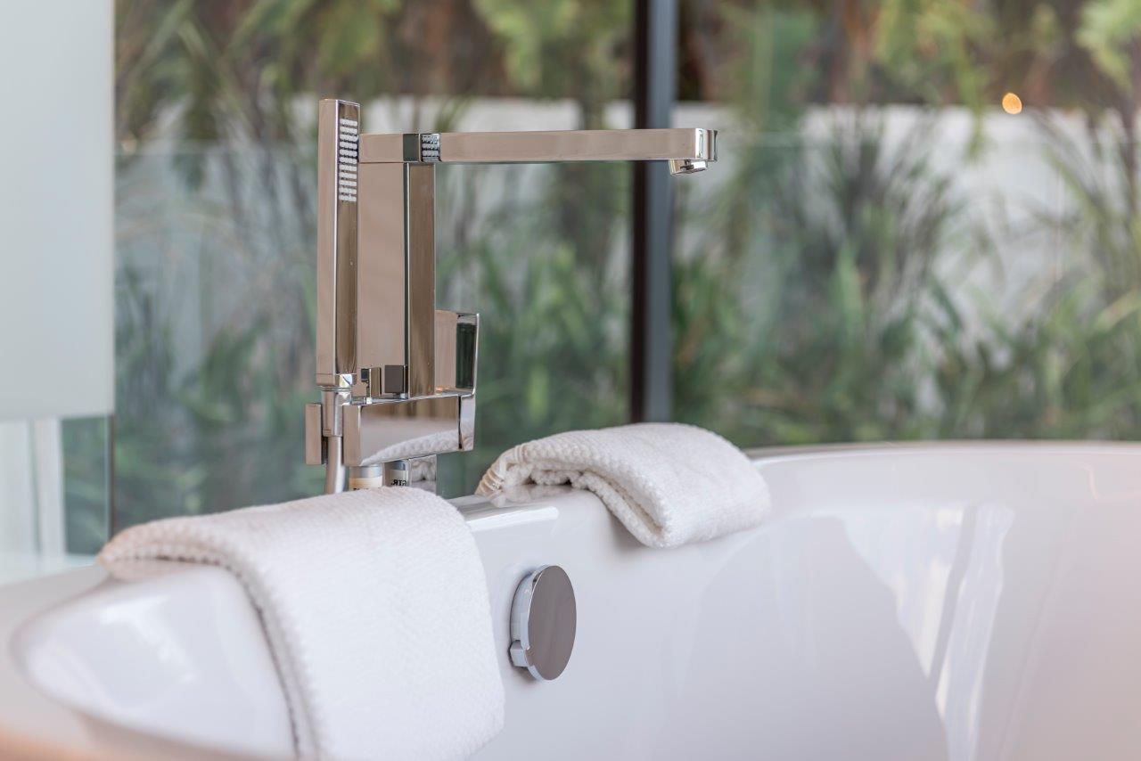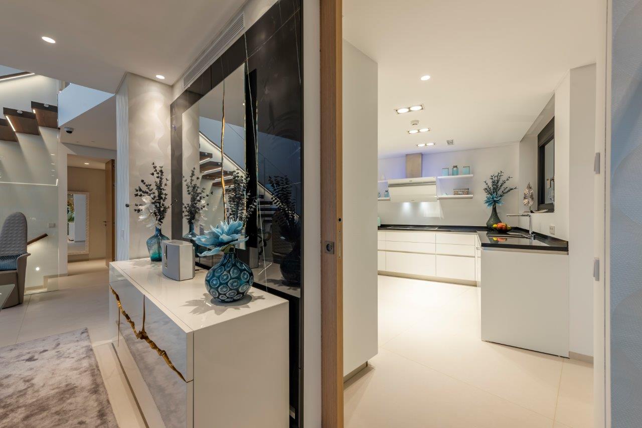 Im September 2018 wurden dann die restlichen Detailarbeiten vorgenommen, wie zum Beispiel das Aufbringen des Feinputzes und das Streichen sämtlicher Innenwände in der Qualitätsstufe Q3, die Installation und Montage sämtlicher Badobjekte, die Inbetriebnahme der Haustechnik sowie die Fertigstellung des Infinity-Pools. Im Laufe des Monats Oktober 2018 wurden dann sämtliche Detailarbeiten abgeschlossen- anschließend erfolgen unter der Leitung der Innenarchitektin Kerstin Bertz-Helmbrecht die Abnahmen sämtlicher Gewerke sowie daran anschließend die behördlichen Abnahmen.