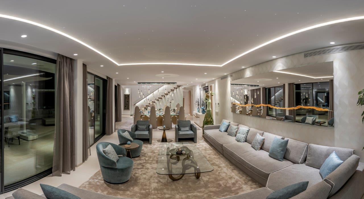 Im August 2017 wurde „raum in form- Innenarchitektur & Architektur“ mit der Konzeption einer großzügigen Villa mit Gästehaus, Pool-Area, Wellness- und Fitnessbereichen, Diskothek, Entertainment- und Lounge- Bereichen sowie einer großzügigen Rooftop-Area beauftragt.