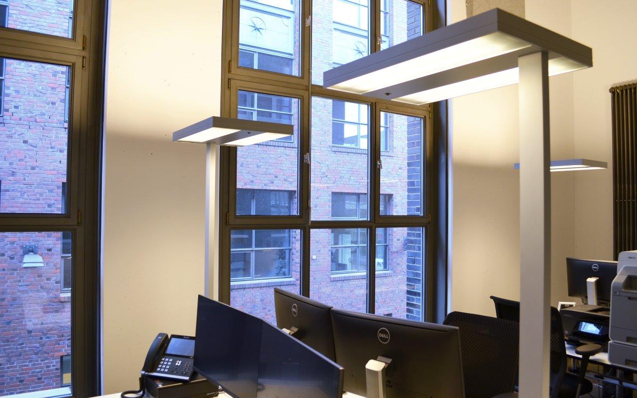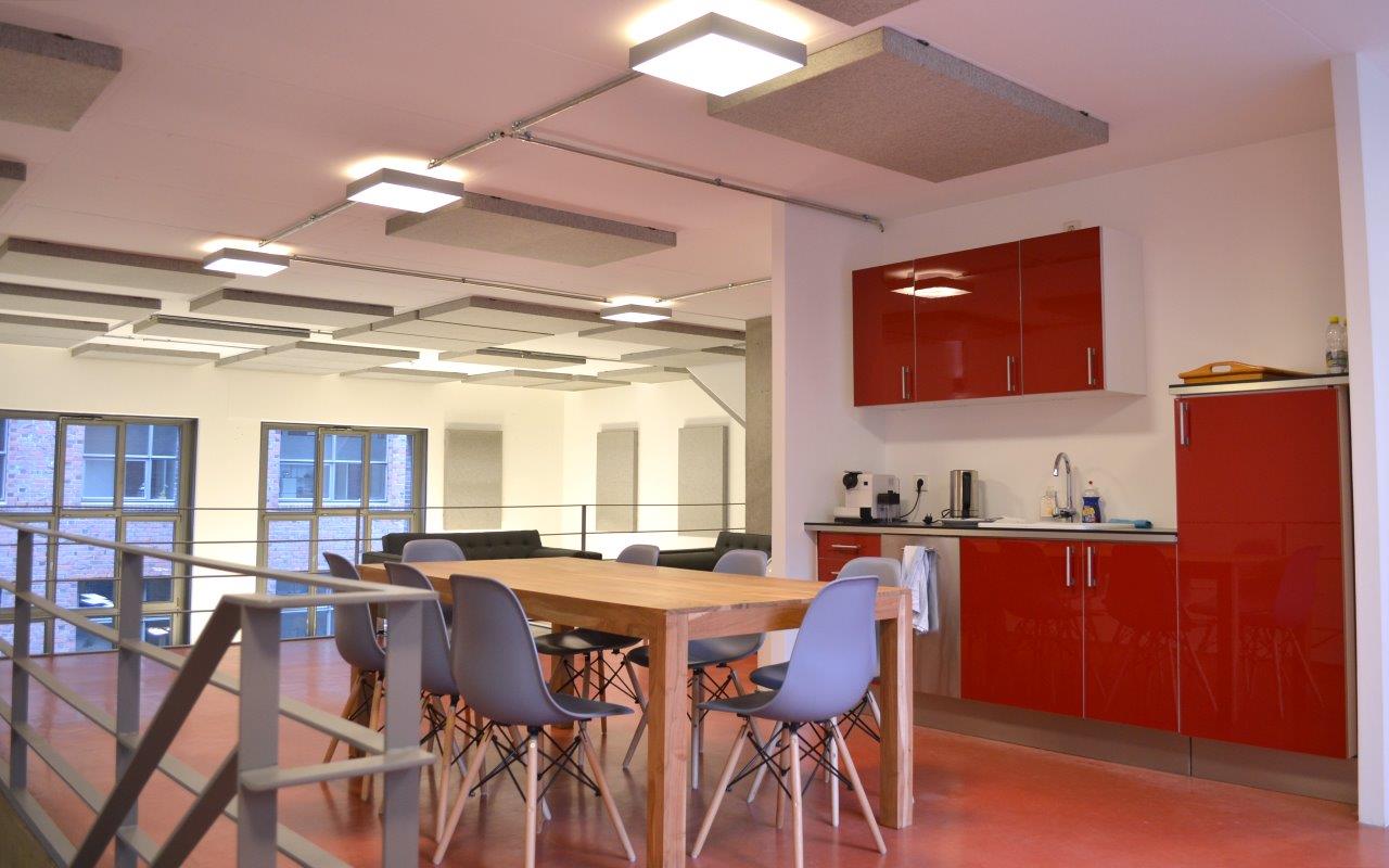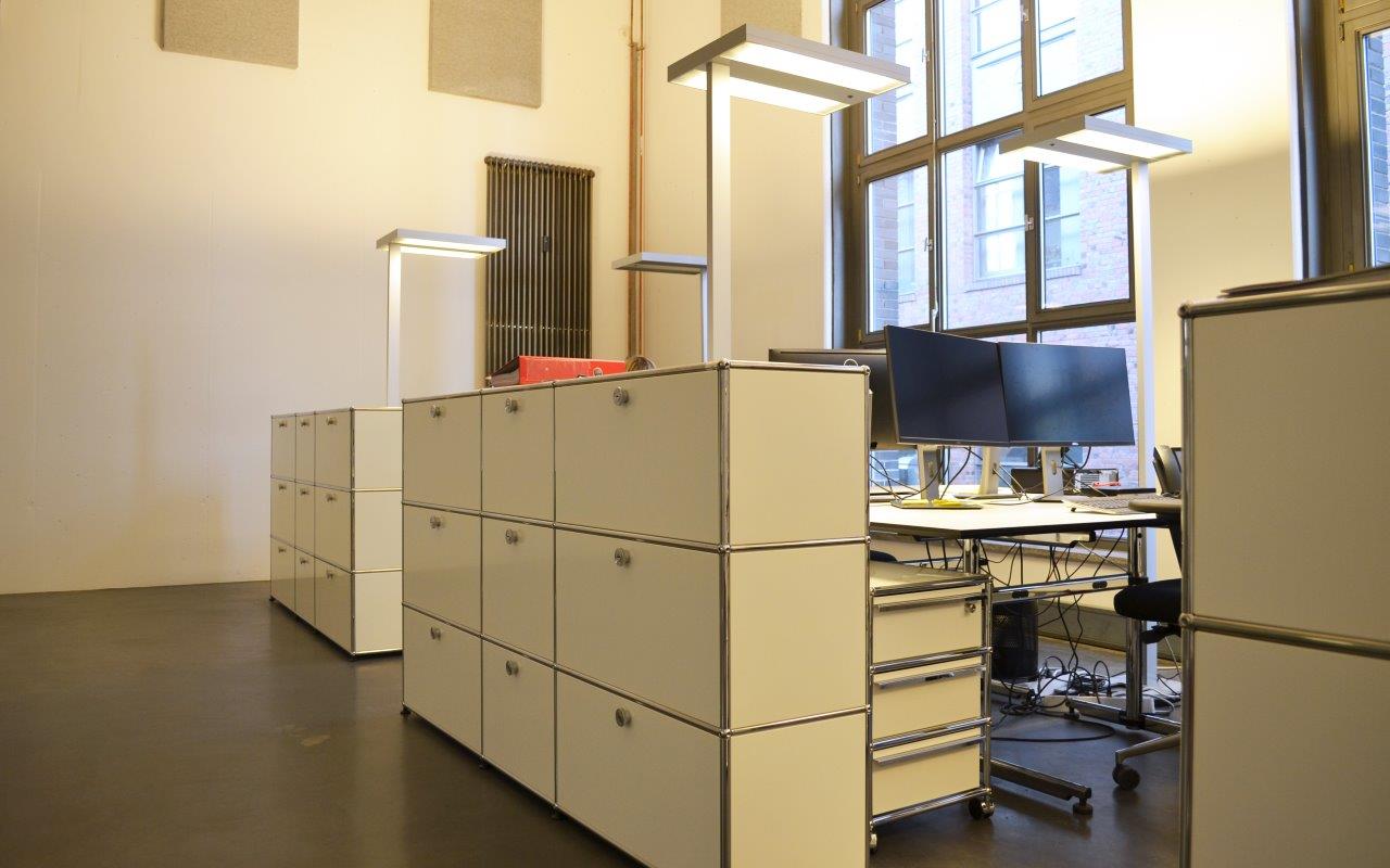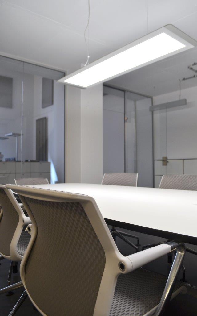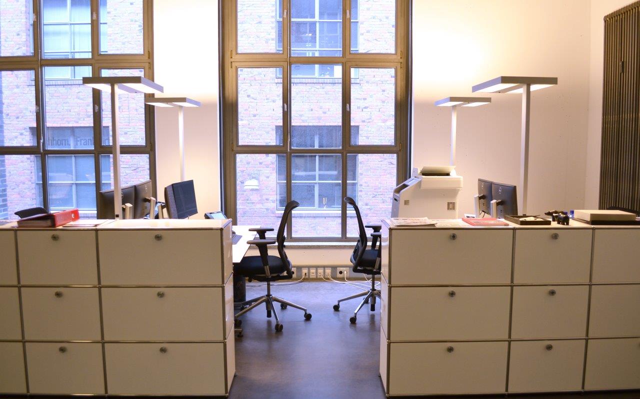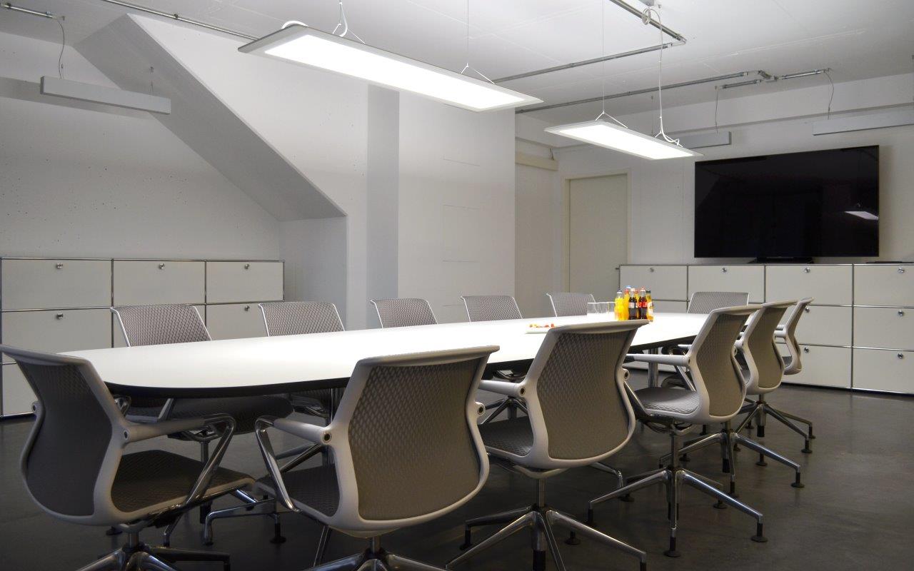 Neben den Konzeptionen hinsichtlich der Büroaufteilung, die unter anderem einen mit Glas abgetrennten Konferenzraum mit großem Besprechungstisch für mindestens 12 Personen vorgesehen hat, erstellte raum in form eine zeitgemäße Beleuchtungsplanung mit dem Einsatz neuartiger Schreibtischlampen, die mit dem „Design Plus“- Preis auf der Light & Building 2017 ausgezeichnet wurden.