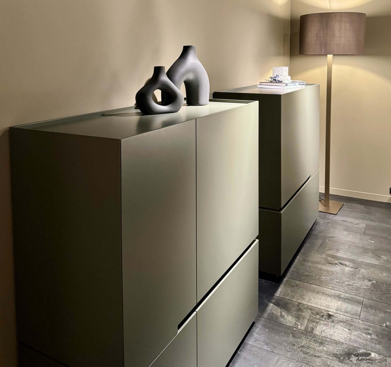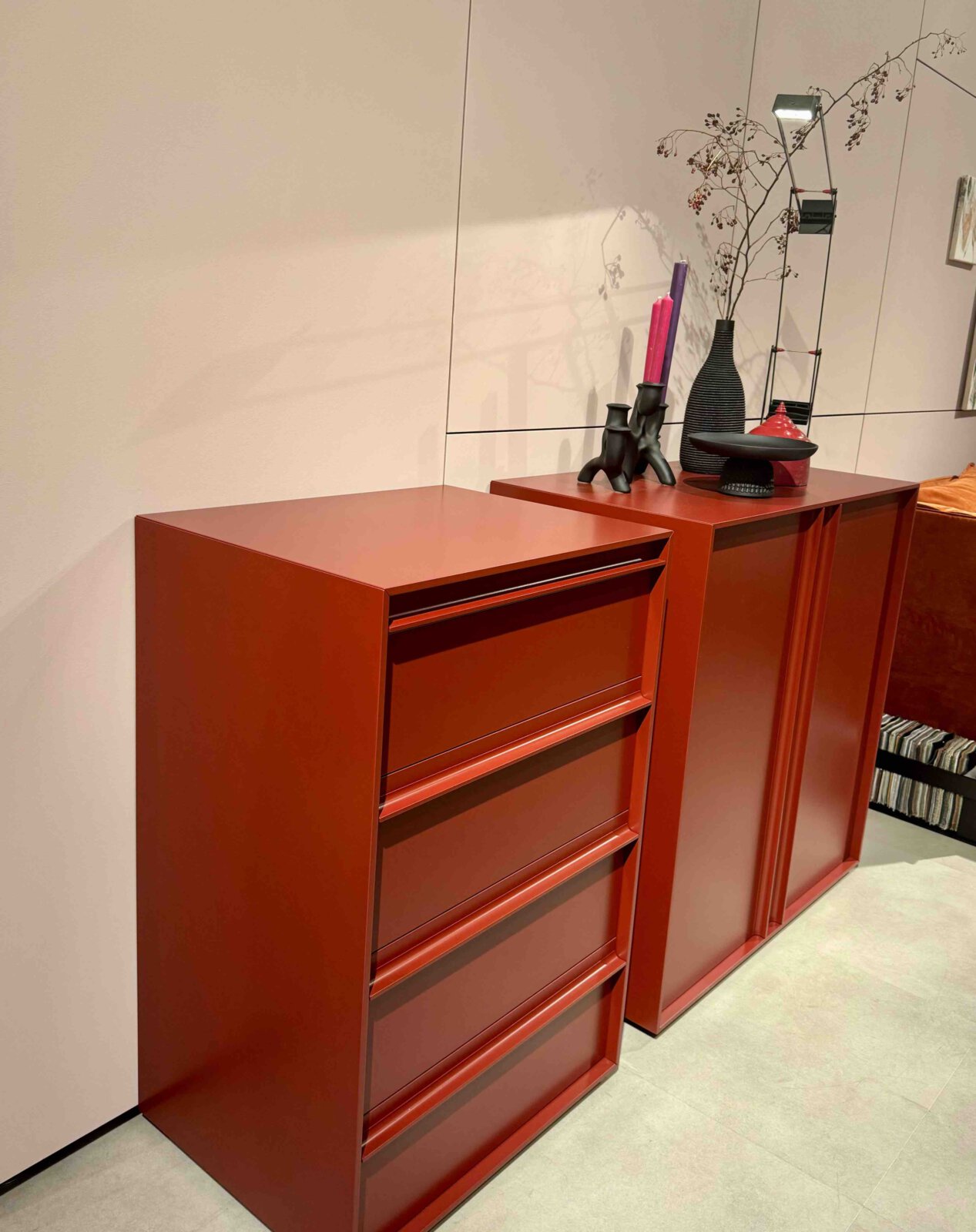 3. Vor allem bei den führenden Holzmöbel-Herstellern wurden die typisch minimalistischen Formensprachen und das geradlinige, nordische Formenvokabular gerne mit innovativen Holzzapf-Verbindungen mit eleganter Hardware und Designer- Schließmechanismen ergänzt. Dabei wirken nun auch die bekannten Designer Serien in der Holzkategorie technisch verfeinert, benutzerfreundlich aufgewertet, wie auch visuell weiterentwickelt. Bei einigen Stauraummöbeln werden auch neue Plattenmaterialien in Fliesenoptik verwendet-diese verleihen den Möbelobjekten eine monolithische, rationale und coole Ausdruckskraft.
