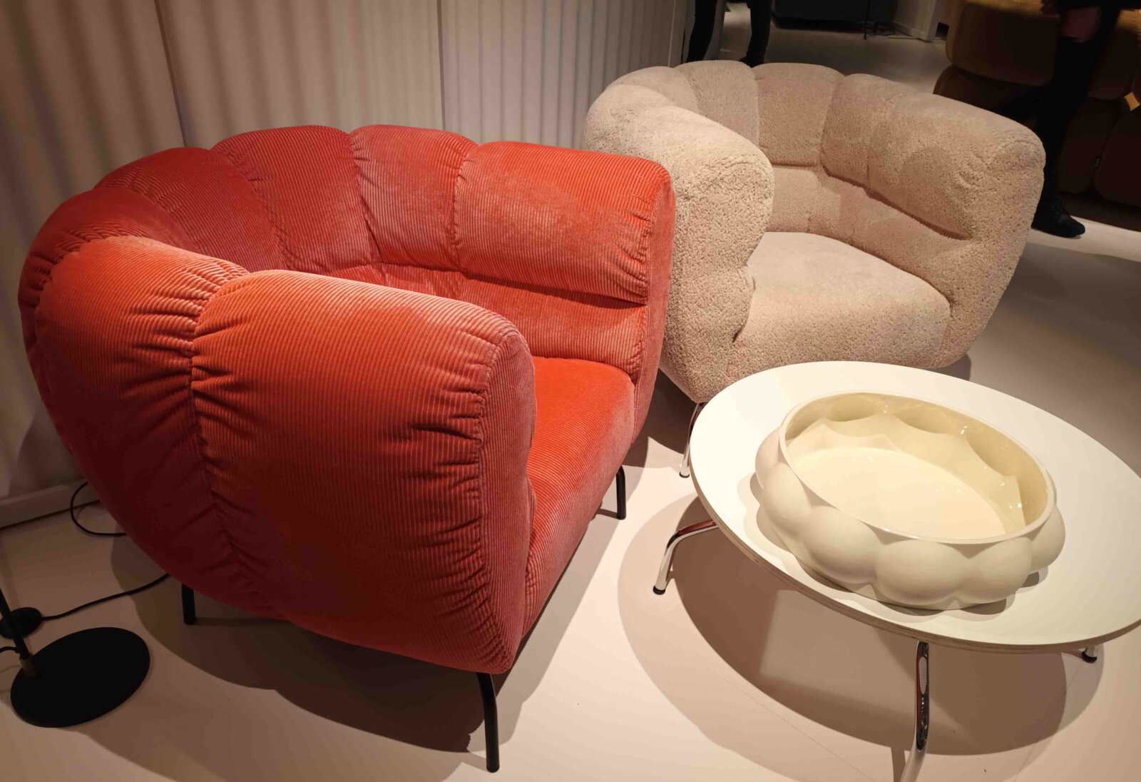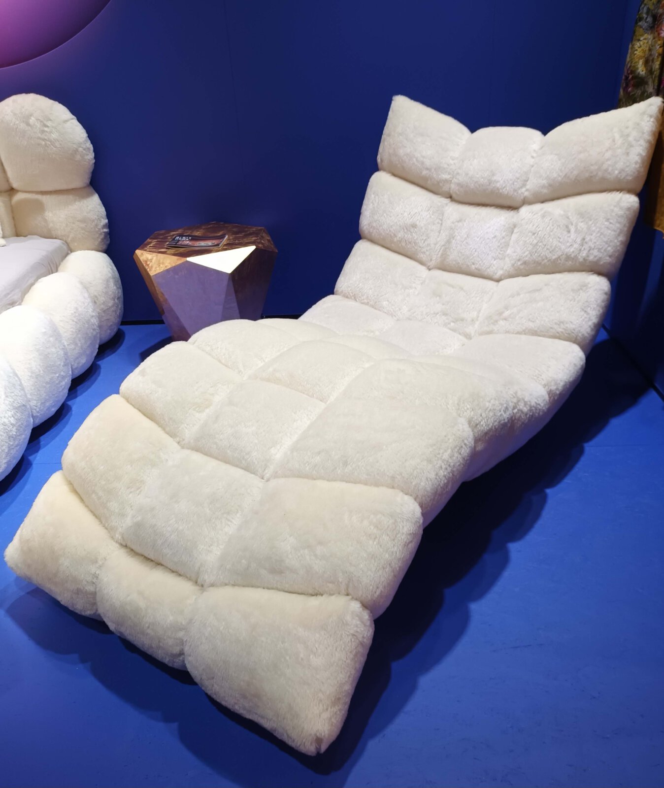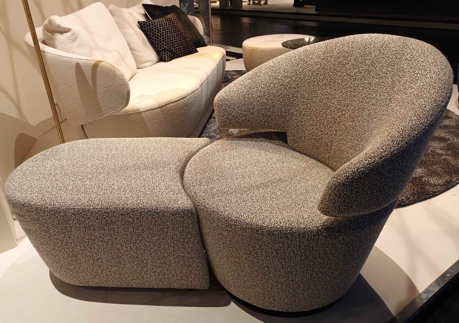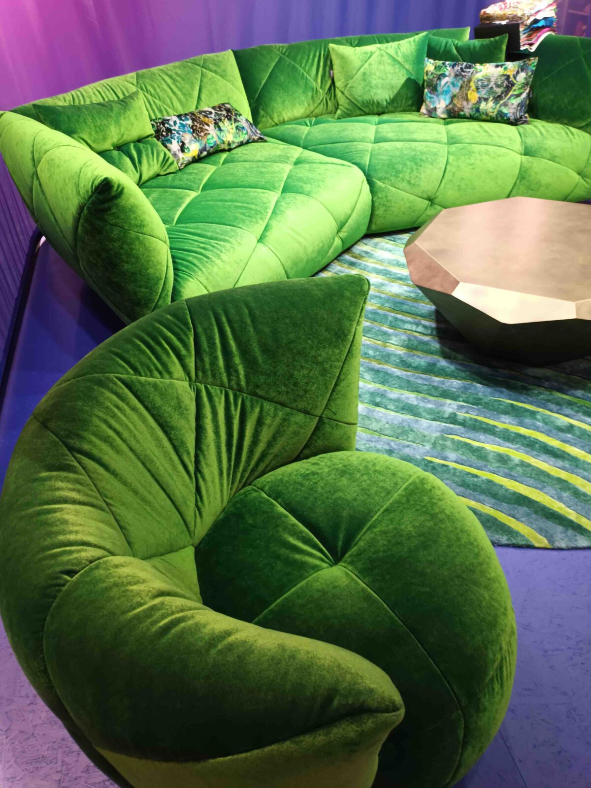 1. Eine mutige, kühne und starke Formgebung war vor allem in der Gruppe der Loungemöbel gezeigt worden. Organisch geformte Sitzskulpturen mit haptisch gestylten und super-soften Bezugsstoffen wurden bei vielen Firmen ergänzend zur Standardkollektion aufgenommen.